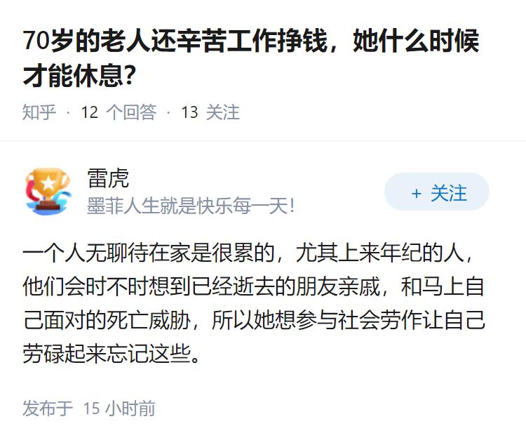70岁的老人还辛苦工作挣钱,她什么时候才能休息?