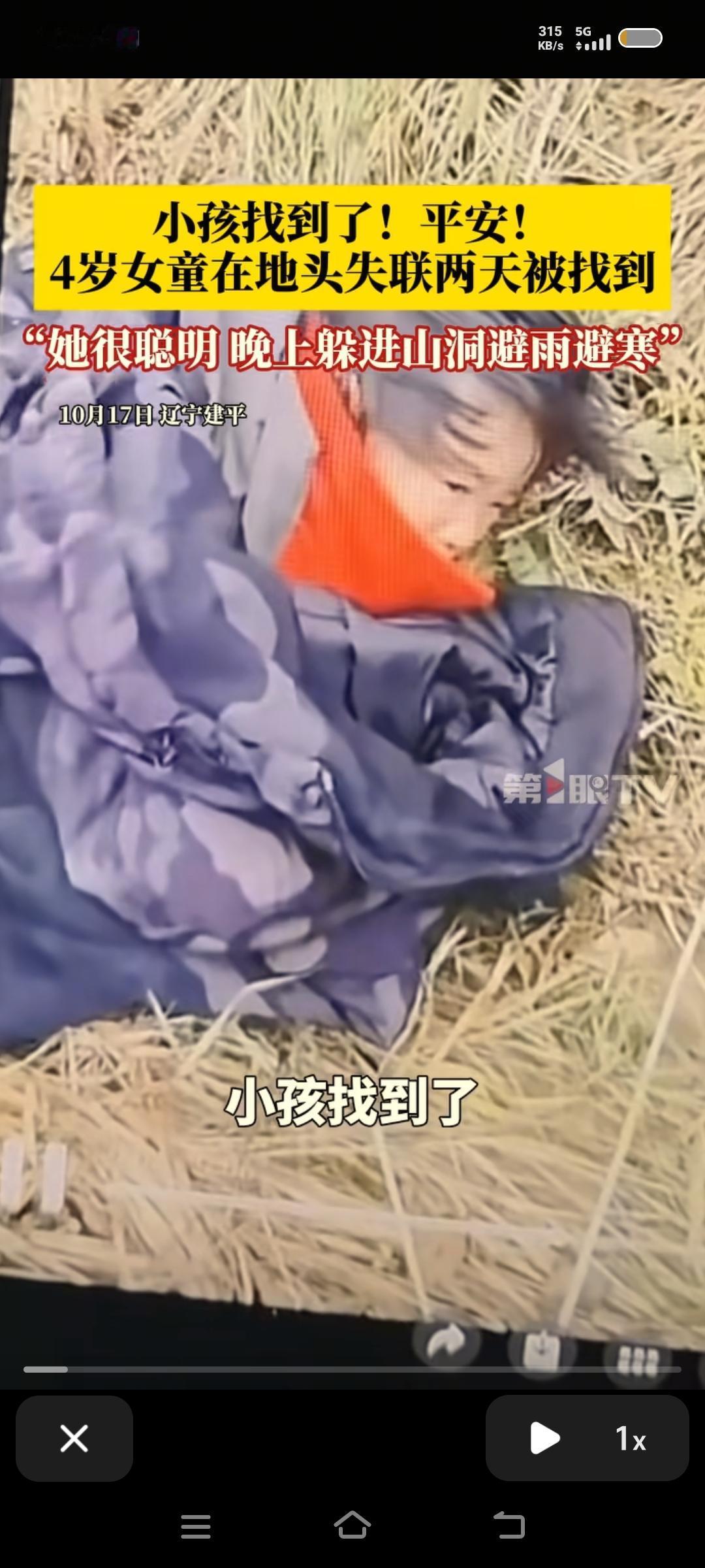 太揪心了!辽宁朝阳一个4岁小女孩,跟着爷爷奶奶去地里秋收时,在面包车里睡着了。奶奶想着就干活20分钟,结果回来发现孩子不见了!车窗开着,车门关着,这么小的孩子能去哪? 全城立即行动起来,警察、消防、救援队,连老乡们都出动了,整整找了三天,出动1.2万人次!就在大家心急如焚时,今天上午传来好消息:无人机在1500米外的荒草沟里发现了孩子! 万幸的是,孩子穿着红色外套躺在草丛里,除了脸上有点擦伤,生命体征平稳,还能跟救援人员说话。听说她这几天自己找水喝、找东西吃,真是个坚强的小生命! 这次救援太感人了: 1️⃣ 科技力量太重要!无人机在复杂地形搜救立大功 2️⃣ 万人搜救展现人间大爱,三天不放弃太暖心 3️⃣ 孩子野外生存能力令人惊叹 【小编说】 看到孩子平安,眼泪都掉下来了!这次真的要给所有救援人员点赞,也要提醒家长们:照顾孩子真的一分钟都不能大意!希望小朋友早日康复,未来平安顺遂! 【免责声明】 文章的时间、过程、图片均来自于网络,文章旨在传播正能量,均无低俗等不良引导,请观众勿对号入座,并上升到人身攻击等方面。观众理性看待本事件, 切勿留下主观臆断的恶意评论,互联网不是法外之地。本文如若真实性存在争议、事件版权或图片侵权问题,请及时联系作者,将予以删除。谢谢!