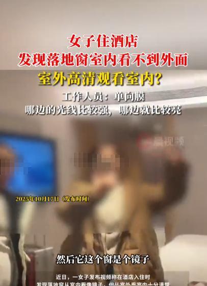 “离了个大谱!”2025年10月,吉林延吉,一女子住酒店时发现房间内的落地窗的玻璃像镜子一样,室内完全看不到外面,可外面却能将房间内看得一清二楚,网友:这是装反了吗? 出门住酒店大家都担心有摄像头,会泄露个人隐私,但是除了摄像头之外,酒店的窗户也得着重注意。 一女子出门旅游入住了当地一家酒店,她进到房间里后发现窗户有些不对劲,只见落地窗的玻璃就像一面镜子一样,清晰照出屋内的全貌,却完全看不到外面。 意识到不对的女子跑到了酒店外面查看,从外面透过玻璃能将屋内的一切看得一清二楚,甚至可以说是“高清”画面,就连屋内的电视播放内容都能看见,这可把女子吓了一跳。 酒店工作人员表示,这个房间是内景窗,窗户上是单向膜,哪边亮就能看到哪边,白天的时候室外比较亮,这时候从屋外就看不到屋内,因为女子入住时是晚上,房间内比较亮,才会出现从外面能看清里面的情况。 不少网友表示这样的设计有些过于荒谬了,如果不知道的人洗完澡出来没穿衣服,那也太尴尬了,不管怎么说,以后出门住酒店除了检查摄像头外还得加上一条了,那就是拉窗帘! 信息来源:《展开女子住酒店发现落地窗室内看不到外面,室外高清观看室内?工作人员:单向膜》潇湘晨报