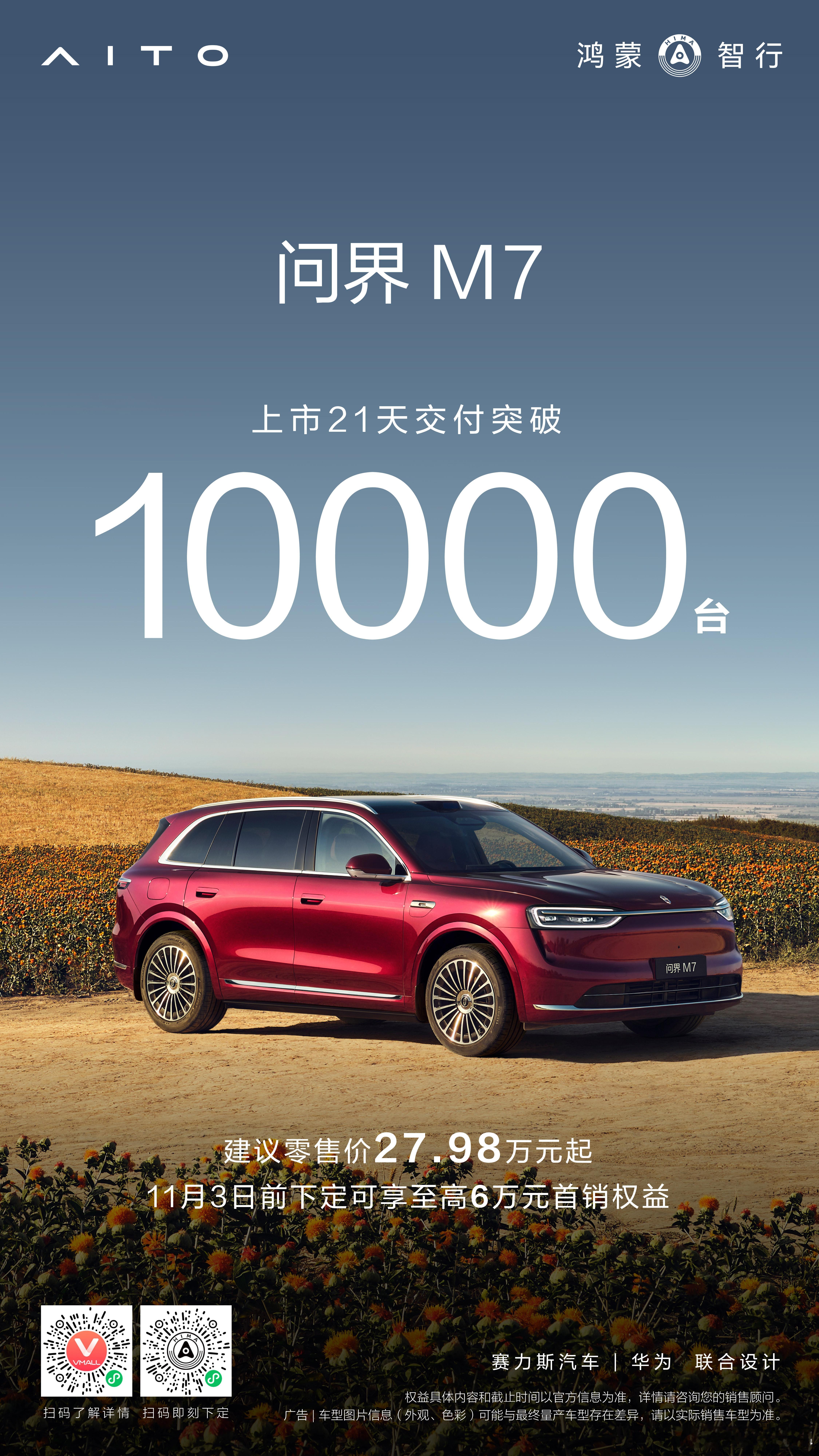 全新问界M7上市3周交付已经破万,这波生产交车速度很给力,继续爬产继续冲!