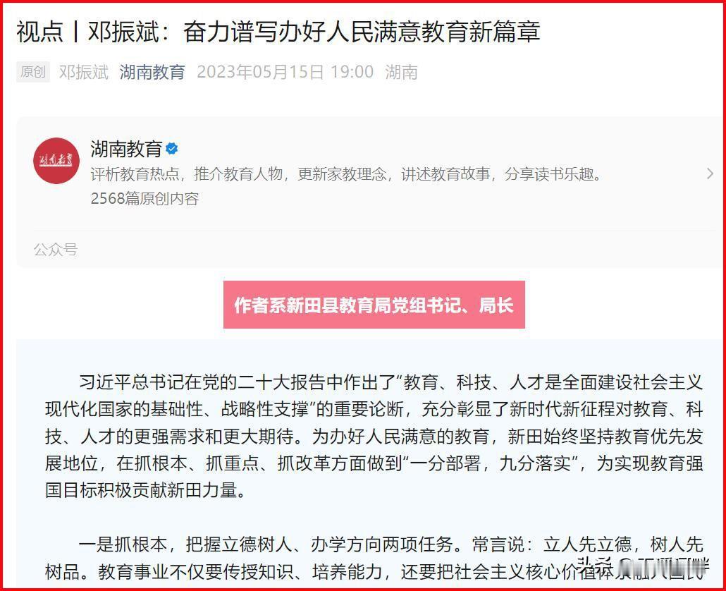 照片中的这个人在湖南永州市新田县教育局工作,我以前在湖南教育媒体上看过他写的文章