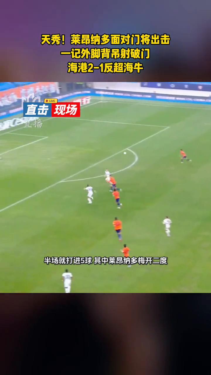 天秀!莱昂纳多面对门将出击,一记外脚背吊射破门,海港2-1反超海牛。 中超第27轮比赛海港和海牛上演进球大战,半场就打进5球,其中莱昂纳多梅开二度,而他打进的第一个进球更是天秀进球。比赛第31分钟,维塔尔过顶直塞,莱昂纳多外脚背吊射破门,海港2比1反超比分。这个进球真是太秀了,本轮最佳进球跑不了。