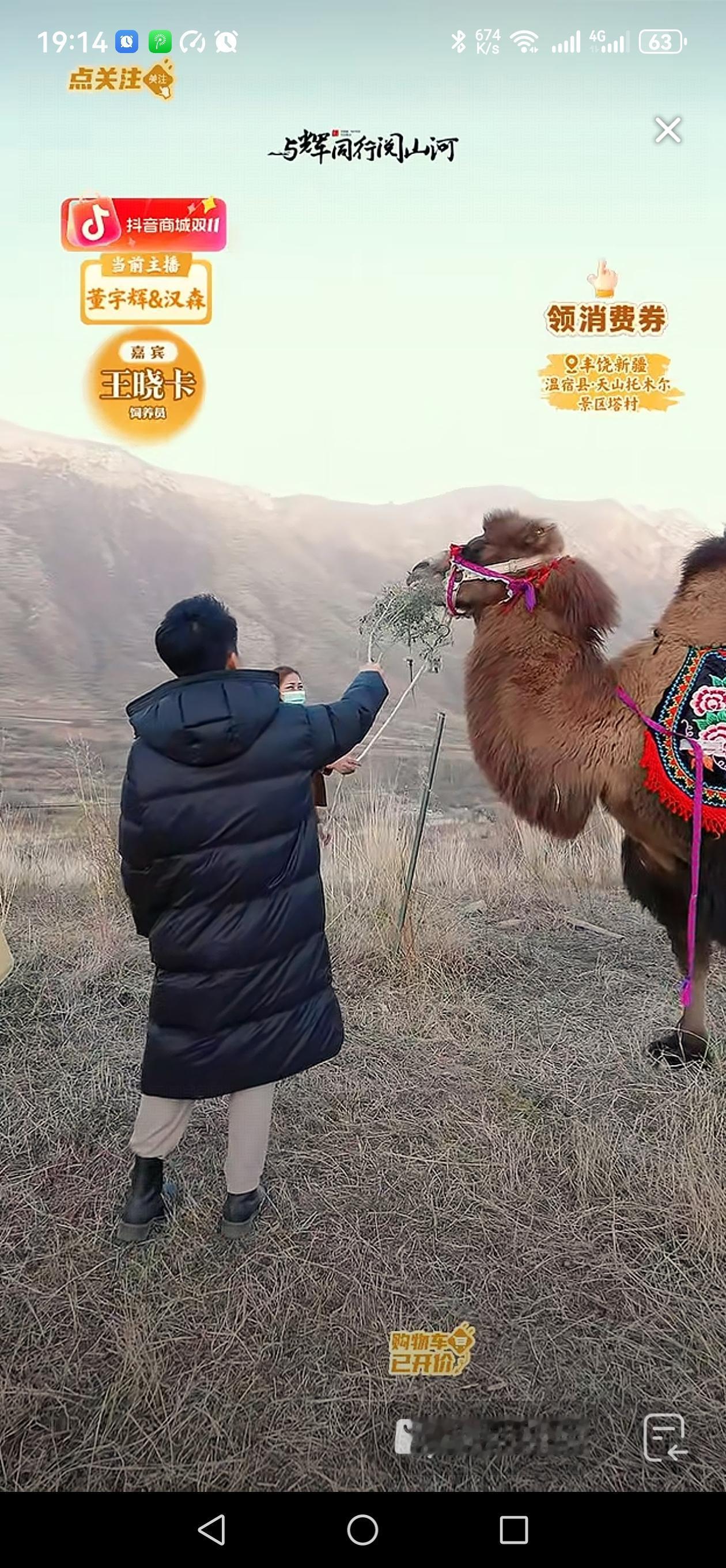 与辉同行阅山河新疆行已经不需要我的支持了,下午征战中抽空看了一下董宇辉在阿克苏大峡谷的直播,人气爆棚,白天也能有20多万人在线,这是以前阅山河很难达到的数据。 至于销量,中午就已经7,000万,妥妥的要打破以往所有的记录,与辉同行的第二直播间兰知春序,活力四射的盼盼正在卖珍珠和服饰,人气也有四万,说明阅山河会带动与辉同行其他高价值产品的营销售。 以前总想多买点支持宇辉,现在发现去年新疆行的奶疙瘩还没有吃完,如今愿意在他直播间购物的人太多,不需要我们刻意的支持了。 那就轻轻松松的陪宇辉喂骆驼,看南疆的大好河山吧。