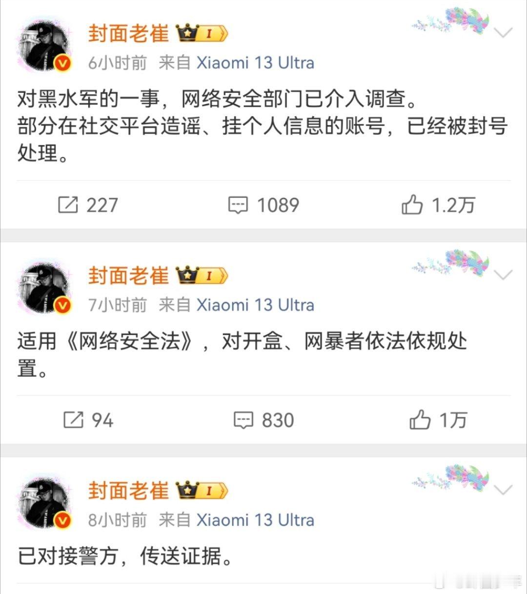 封面老崔称网络安全部门介入调查黑水军 黑水军终于要迎来“重拳整治”了?要知道从搭建平台刷量到组织账号控评,这些操作早被明确禁止,此前已有不少涉案人员被刑拘 。现在网络安全部门介入,不管是背后的组织者还是链条上的参与者,想必都躲不过核查,这对净化网络舆论环境绝对是好事!