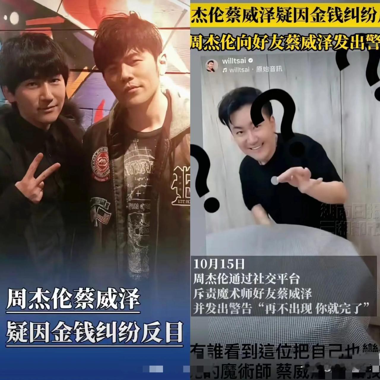 周杰伦这几天估计要失眠了, 他没想到, 那个和他合作超7年,多次参与他节目的昔日好友魔术师蔡威泽,竟然玩失联还背刺了他。 蔡威泽曾是周杰伦的亲密好友,也是一起合作的魔术师,两人从2016年一起合作开始,蔡威泽连续三季参与周杰伦的节目《周游记》,周杰伦带着他发展,还公开称他是“能互相扶持的兄弟。” 周杰伦帮助兄弟没得说,24年通过威杰尔音乐还给蔡威泽投了1亿新台币,没想到,一年多过去了,蔡威泽不仅没有按约定期限还钱,还跟周杰伦玩起了失踪。 摊上这么个朋友,估计周杰伦的头都要大了吧。 眼下威杰尔音乐收到了法院催讨的文件,此事导致周杰伦后面的演唱会也受到影响,周杰伦已经对好友取消了关注。 周杰伦这是遇人不淑了啊,果然娱乐圈的友情在利益面前是相当脆弱啊。 不得不感慨,再好的友情也难经得起金钱的考验啊,真的是人心难测,谈感情伤钱,谈钱又容易伤感情。 面对玩失联还背刺他的好友,周杰伦估计也很无奈吧。对此,大家怎么看呢?