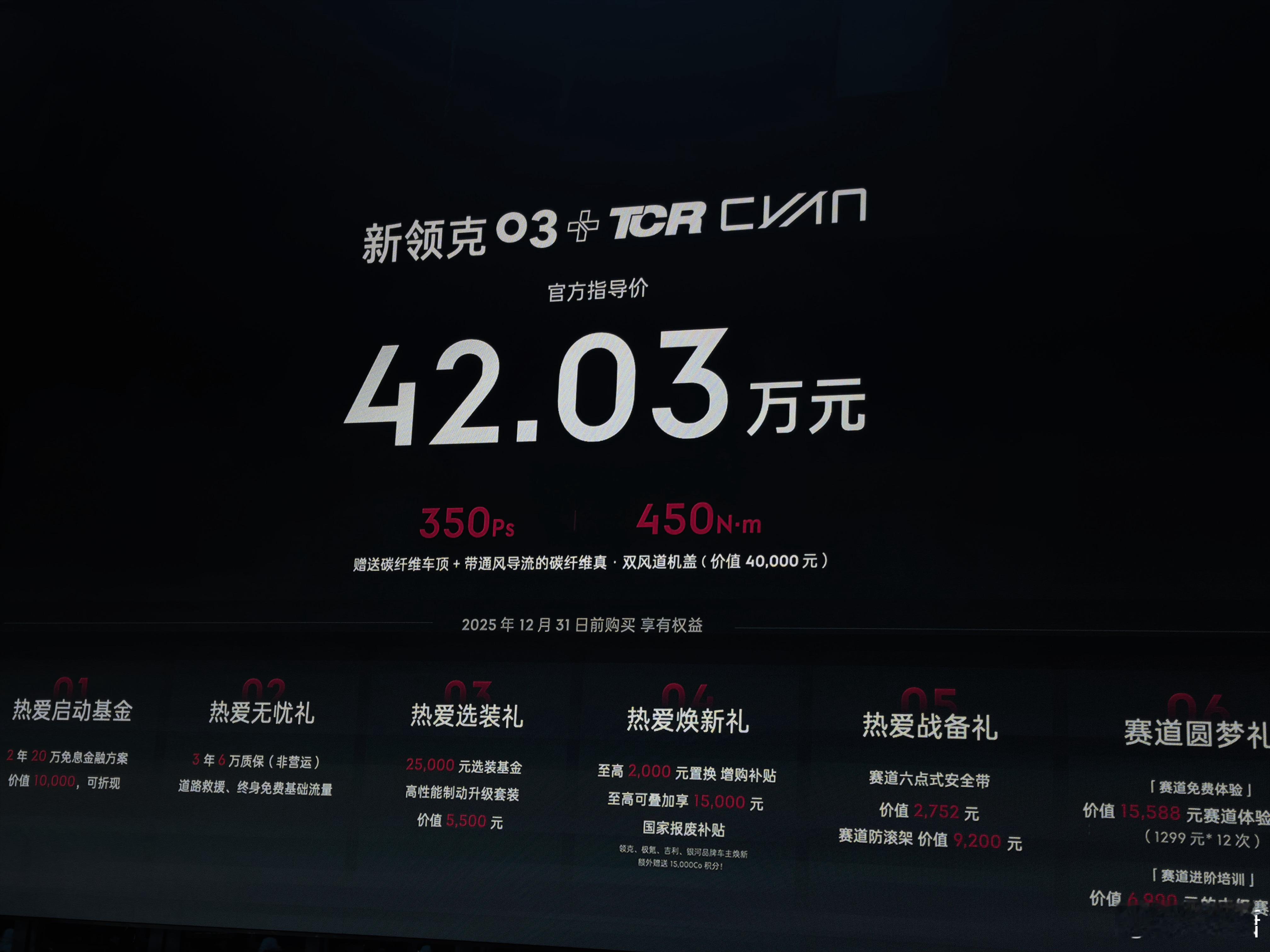 第三代领克03价格香爆了!2.0T版Ultra,算上权益13.88万,270马力!配置看图2,前几天试驾的时候哪想到是这个价格….