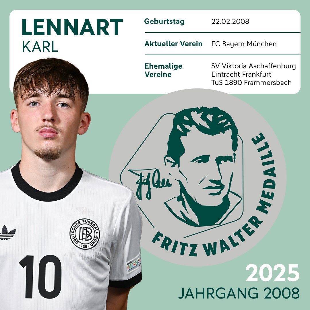 卡尔获得了2008年出生的最佳德国男子球员Fritz Walter银牌。拜仁女足的Alara Şehitler和Luzie Zähringer分别获得了2006年和2008年出生的德国最佳女子球员Fritz Walter金牌 ​​​
