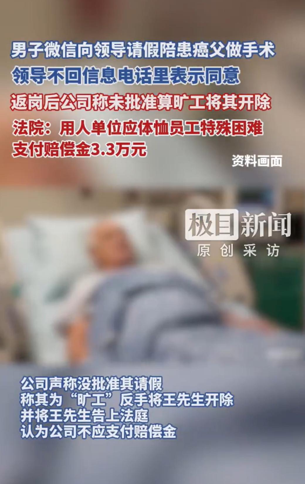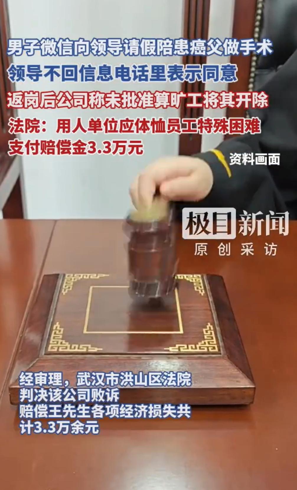 湖北武汉,一男子的父亲因肝癌晚期需要手术,主治医生告知需要家属全程陪护。作为独子,男子别无选择,在病榻前,用微信向领导发出了请假申请,消息显示“已读”,却迟迟没有回复。情急之下,男子又拨通电话,获得了领导“先处理家里的事吧”的口头应允。男子以为这便是准假,放心陪护父亲。不料,当男子返回岗位,等待他的却是一纸“旷工开除”通知,理由是“未经批准擅自离岗”。事后,领导矢口否认给过准假,强调未走完纸质流程的请假一律无效。男子不服,索要违法解雇赔偿金,历经劳动仲裁、一审、二审,法院这样判决。 二零二一年深秋,王磊(化名)通过严格招聘,成为武汉一家建筑公司的采购专员,工作勤恳,任劳任怨,总能在季度考核中稳获“合格”评级。 二零二四年初春,父亲持续数周的腹痛被诊断是肝癌晚期。王磊站在医院走廊里,手中的诊断书微微颤动。透过虚掩的病房门,他看见父亲消瘦的侧影,想起小时候父亲总爱把他扛在肩头看元宵灯会。 作为独子,王磊深知这份责任的分量,此后的一个多月里,王磊三次请假陪父亲复查。 每次王磊都提前完成工作交接,从未耽误采购进度。 三月十四日,主治医生办公室里的谈话格外凝重:“这是最后一次手术机会,术后至少需要一周密切护理。” 王磊沉默地点点头,在医生开具的手术通知单上签下名字时,指尖在“手术风险告知书”几个字上停留了许久。 三月十五日晚八点二十三分的病房,父亲刚服完止痛药睡去,王磊在手机编辑了请假和工作安排的短信发给总经理李总(化名)的微信 很快,信息显示“已读”,但李总却迟迟没有回复。 深夜十一点十分,王磊等不及了,主动拨通电话,向李总解释:“李总,医生说这可能是父亲最后的手术机会......” 电话那头沉默片刻,冷冷的说道:“知道了,你先处理家里的事吧。” 这句看似随意的回应,却让王磊紧绷的神经稍稍放松,在他看来,李总同意了请假。 之后,王磊全程陪同自己父亲,直至手术结束,好在手术比较顺利。 三月二十八日,王磊安顿好父亲赶到公司时,发现自己的办公电脑已被格式化。 行政部送来的通知单上写着“连续旷工8日”。更让他心寒的是,公司全员群里的除名公告,将他描述成擅自离岗、目无纪律的员工。几个项目群相继将他移出,连备份工作记录的机会都没留下。 随后,王磊收到了公司下发的解除劳动关系通知书,理由是,未履行请假手续缺勤视为严重违纪。 王磊找到李总当面对质时,对方矢口否认:“当时只是安慰,不是准假。” 王磊翻遍手机,只找到那通电话的通话记录,却发现,这通重要的对话竟没有录音。 无奈之下,王磊申请了劳动仲裁,主张公司系违法解除劳动合同,并要求公司支付经济补偿金及未结清工资差额。 在仲裁期间,公司出示了带有王磊签名的《员工手册》培训记录,强调:“口头承诺不具法律效力,纸质审批才是唯一凭证。” 王磊提交了微信已读回执、通话时间记录、完整的病历资料,还有同事证言证实日常请假多采用微信报备,等等。 二零二四年八月,仲裁委认为,用人单位在知晓紧急事由后未明确反对,应视为默示同意。公司解除行为违法,裁决支付赔偿金3.3万余元。 公司不服,起诉至法院。 法院会如何判决呢? 《劳动合同法》第三条规定,订立劳动合同,应当遵循合法、公平、平等自愿、协商一致、诚实信用的原则。 法院指出,该原则贯穿于劳动合同履行的全过程。 王磊的父亲罹患肝癌晚期并需要进行关键手术,作为家中独子,其承担必要的陪护与照料责任,为社会公序良俗所倡导。 公司《员工手册》虽规定需履行纸质审批流程,但本案情形特殊,王磊于周五晚间得知周日手术,次日即为周六,客观上已无法在常规工作时间内办理纸质审批手续。 在此紧急情况下,王磊通过微信详细陈述事由、请假期限并提供详尽的工作交接方案,已尽到其所能及的、最大限度的告知与勤勉义务。 其后,为确认领导态度,王磊进一步通过电话沟通,李总未对其请假要求提出任何异议,反而在电话中作出“先处理家里的事”的指示,足以使王磊产生“其请假已获批准”的合理信赖。 公司事后否认该口头同意的效力,有违诚实信用原则。 此外,王磊请假事由正当,且已履行了在当时紧急情况下所能做到的通知义务,并获得了管理层的实质同意。 法院认为,王磊的缺勤行为不具备“无正当理由”和“未经批准”的核心特征,不属于旷工。 《劳动合同法》第三十九条规定,劳动者有下列情形之一的,用人单位可以解除劳动合同:……(二)严重违反用人单位的规章制度的;…… 所以,公司解除与王磊的劳动合同系违法解除。 基于此,法院判决公司向王磊支付违法解除赔偿金、工资差额及未休年休假工资,共计 3.3 万余元。 对此,您怎么看?