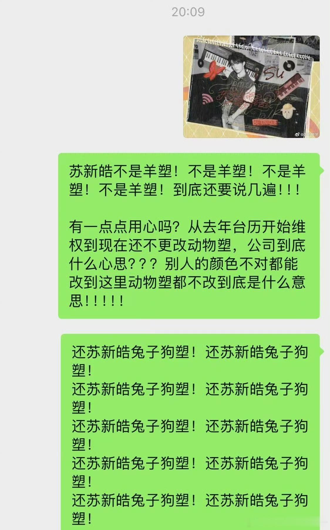 苏新皓粉丝站要求时代峰峻归还官方兔子狗塑