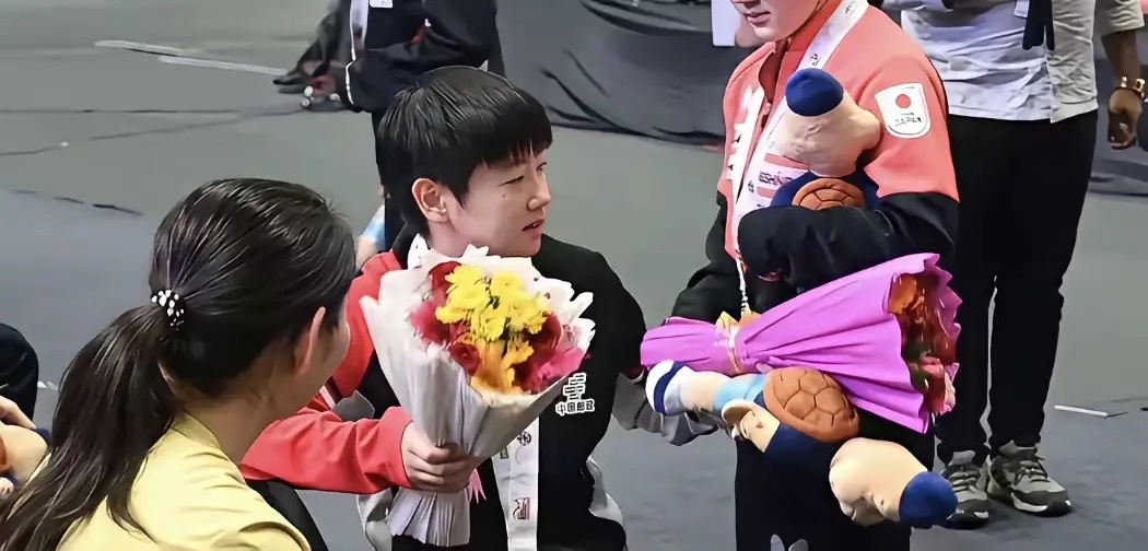 莎莎一脸神秘告诉佳佳,自己打听过了,大藤沙月身高只有1.52米。正聊着,大藤沙月就笑着走过来,把手里的花束递给莎莎,莎莎大大方方接过,又利落地回赠了自己的花。这波操作,莎莎的风范直接拉满,谁能不爱呀!
