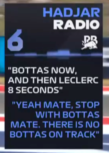 哈贾尔工程师:博塔斯在你后面,之后8秒是勒克莱尔哈贾尔:醒醒,这里没有博塔斯😂