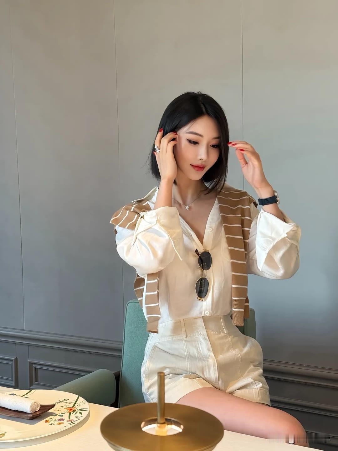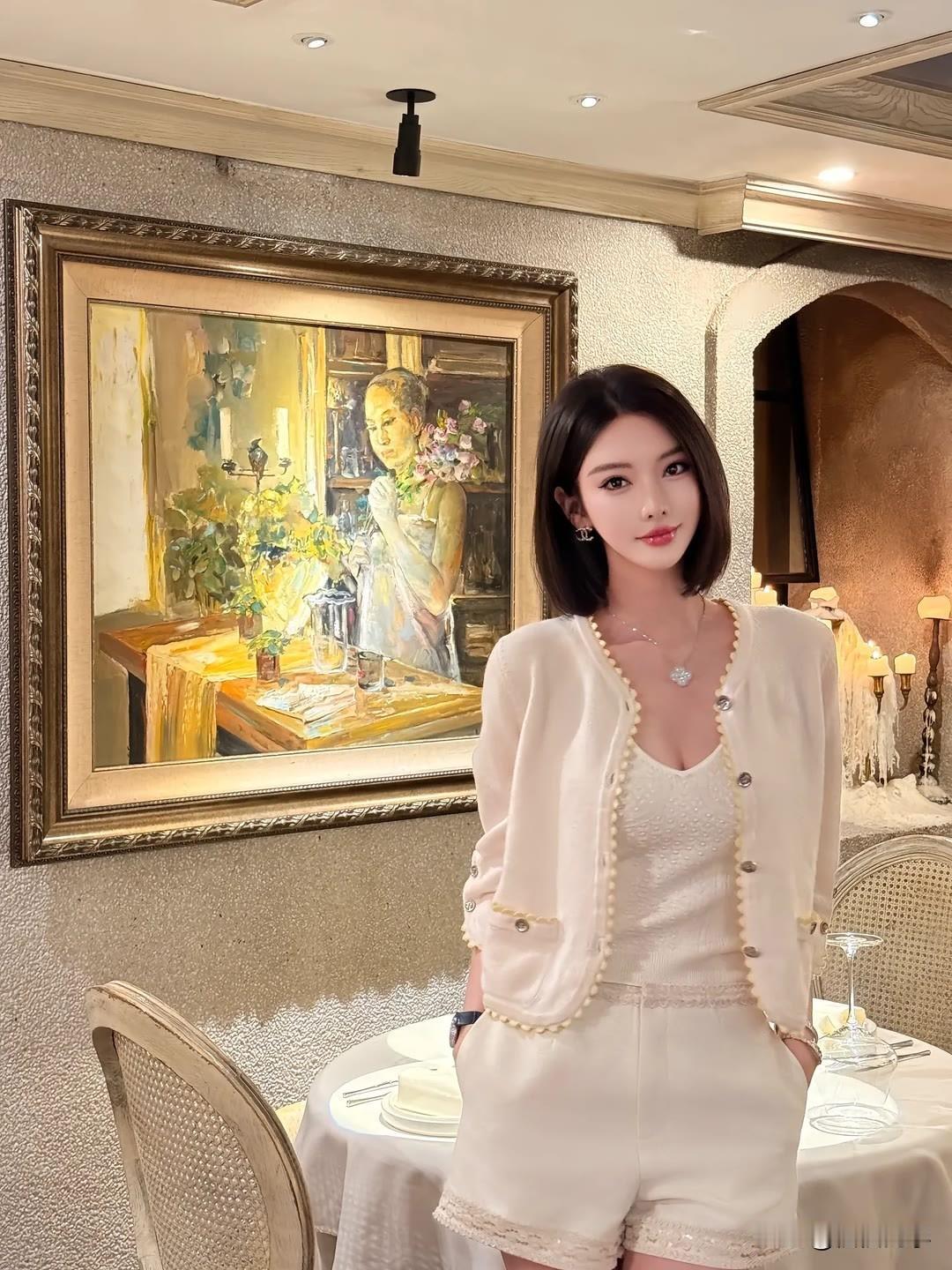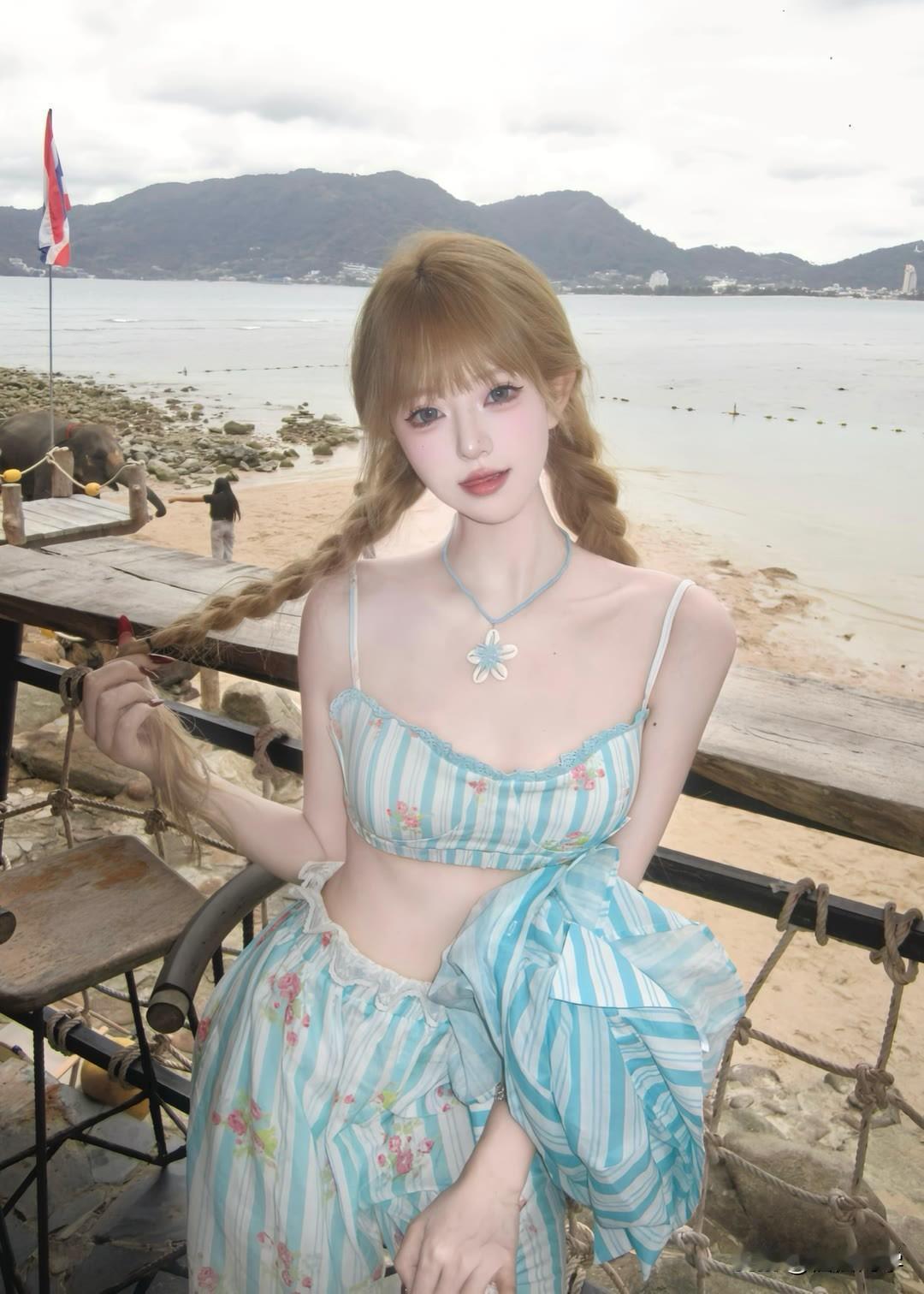 碧海潮生处,美人倚栏杆。轻舟泛处烟霞绕海上红裙眺望