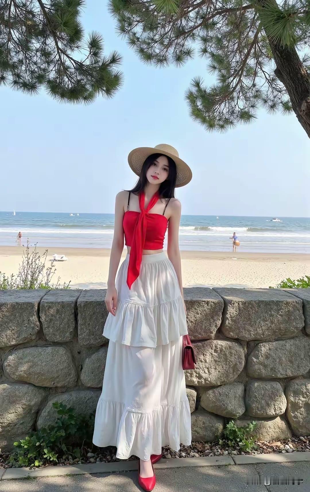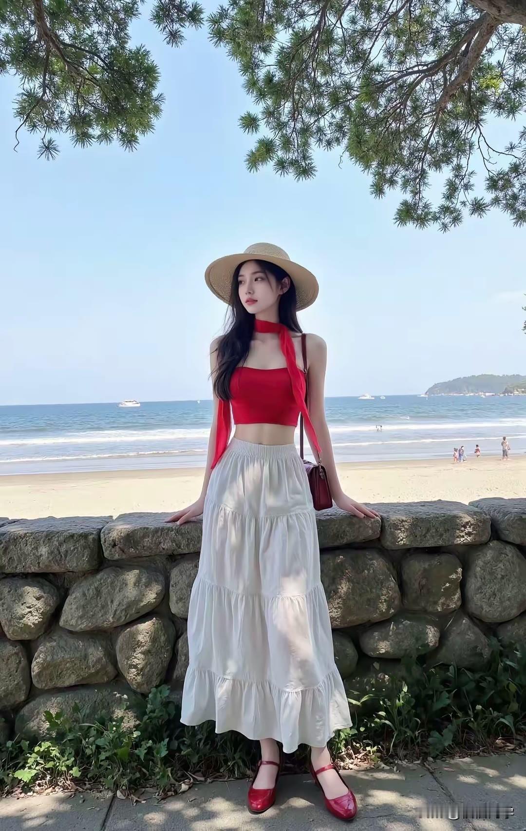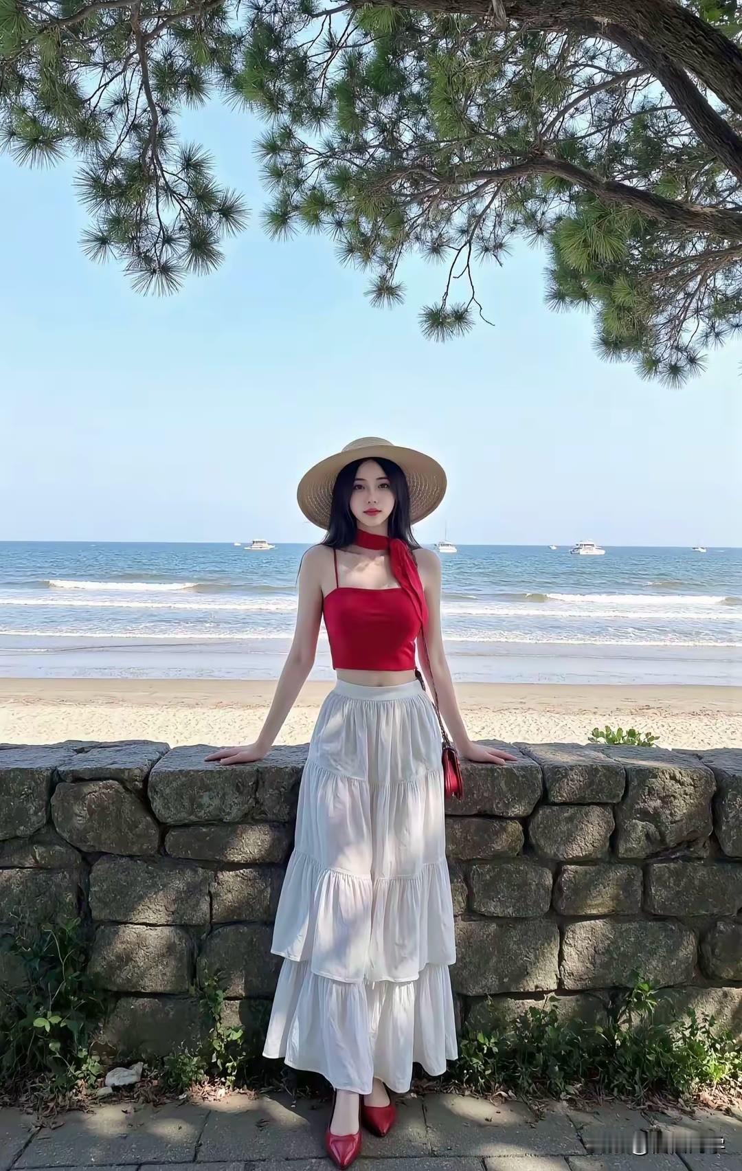 “红袖添香夜,轻纱拂海风”,这画面太美了。想象在一个静谧的夜晚,一位身着红裙的佳