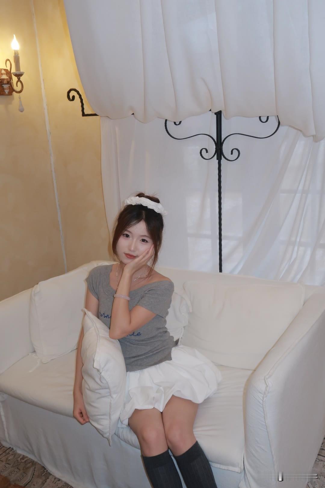 清新甜美少女风,白色连衣裙搭配灰色T恤,轻松自在,夏日必备!🌞👗💃夕阳似火,天尽头可否有思念的人?