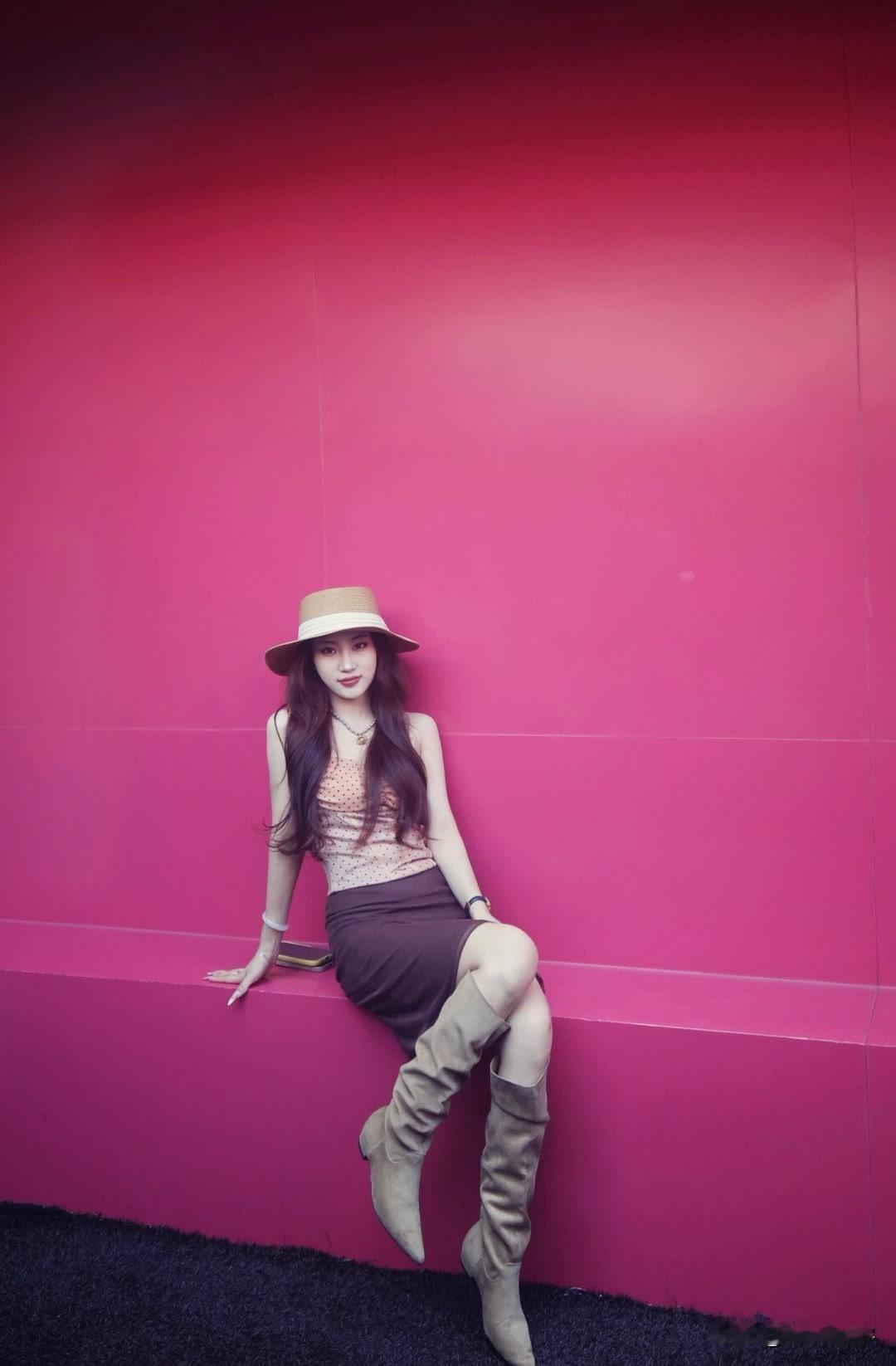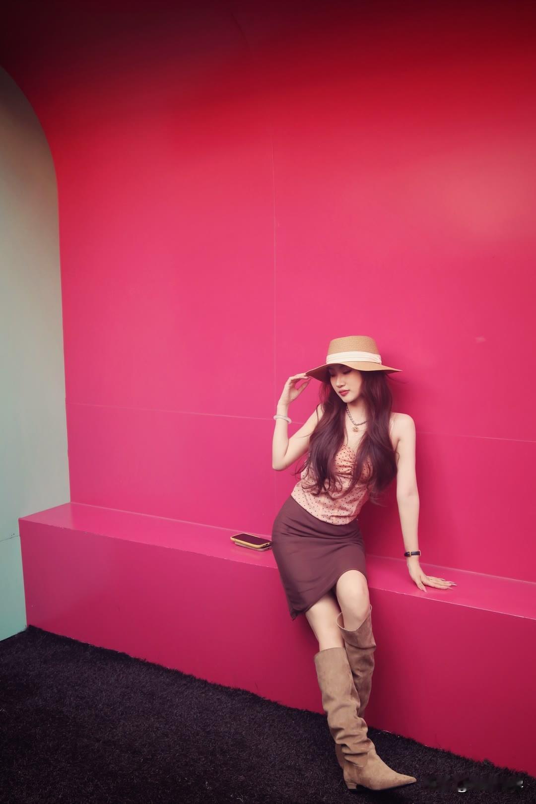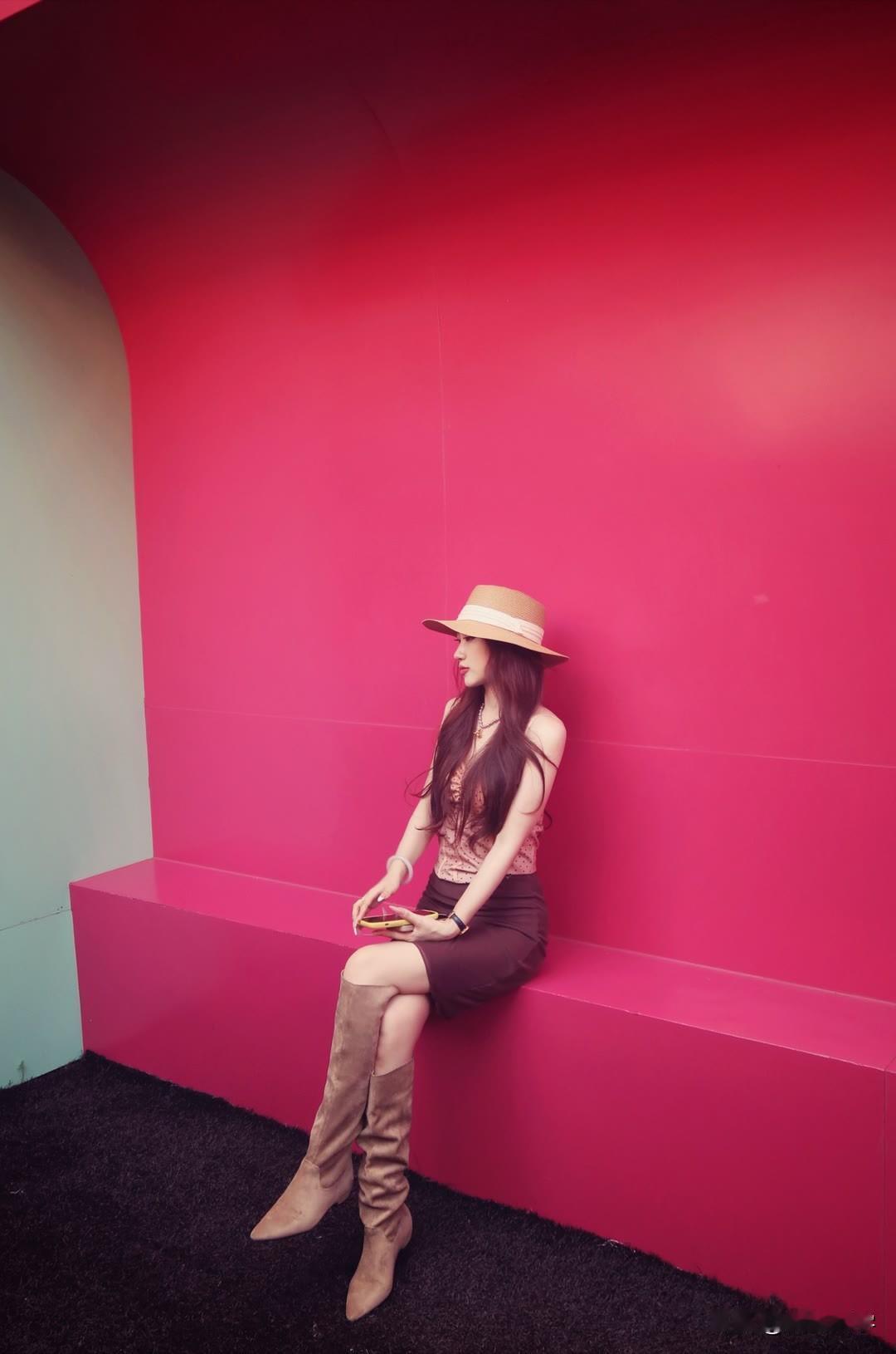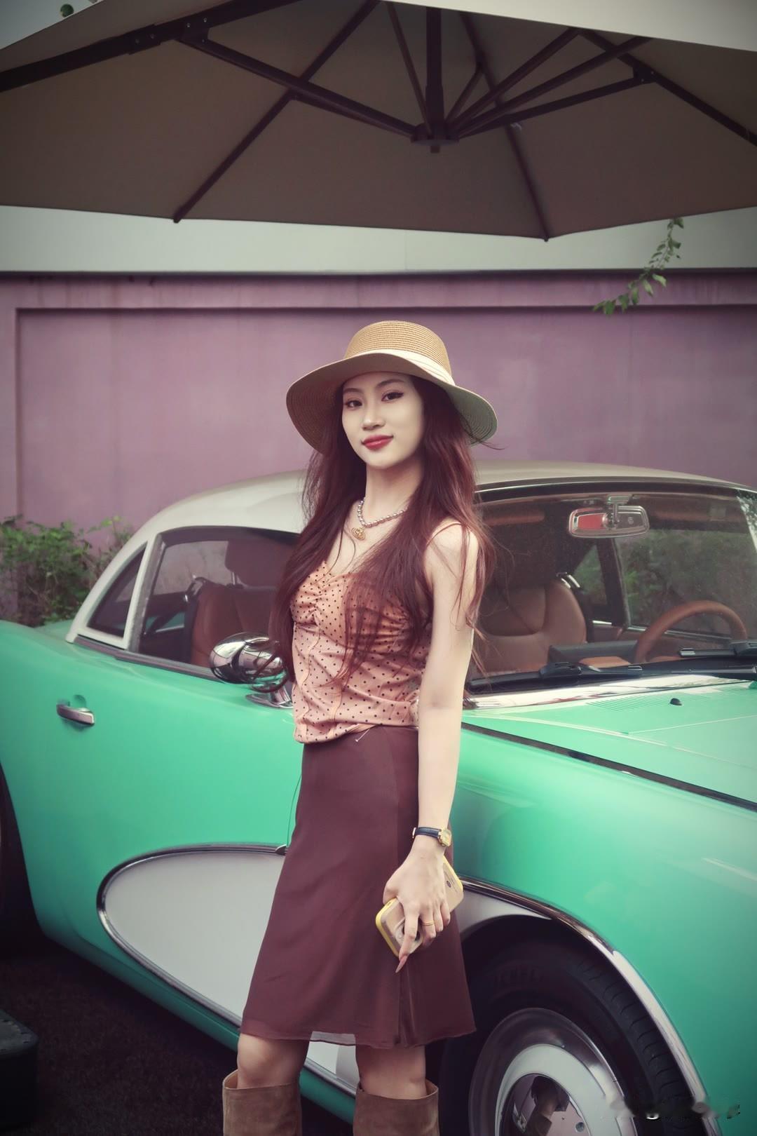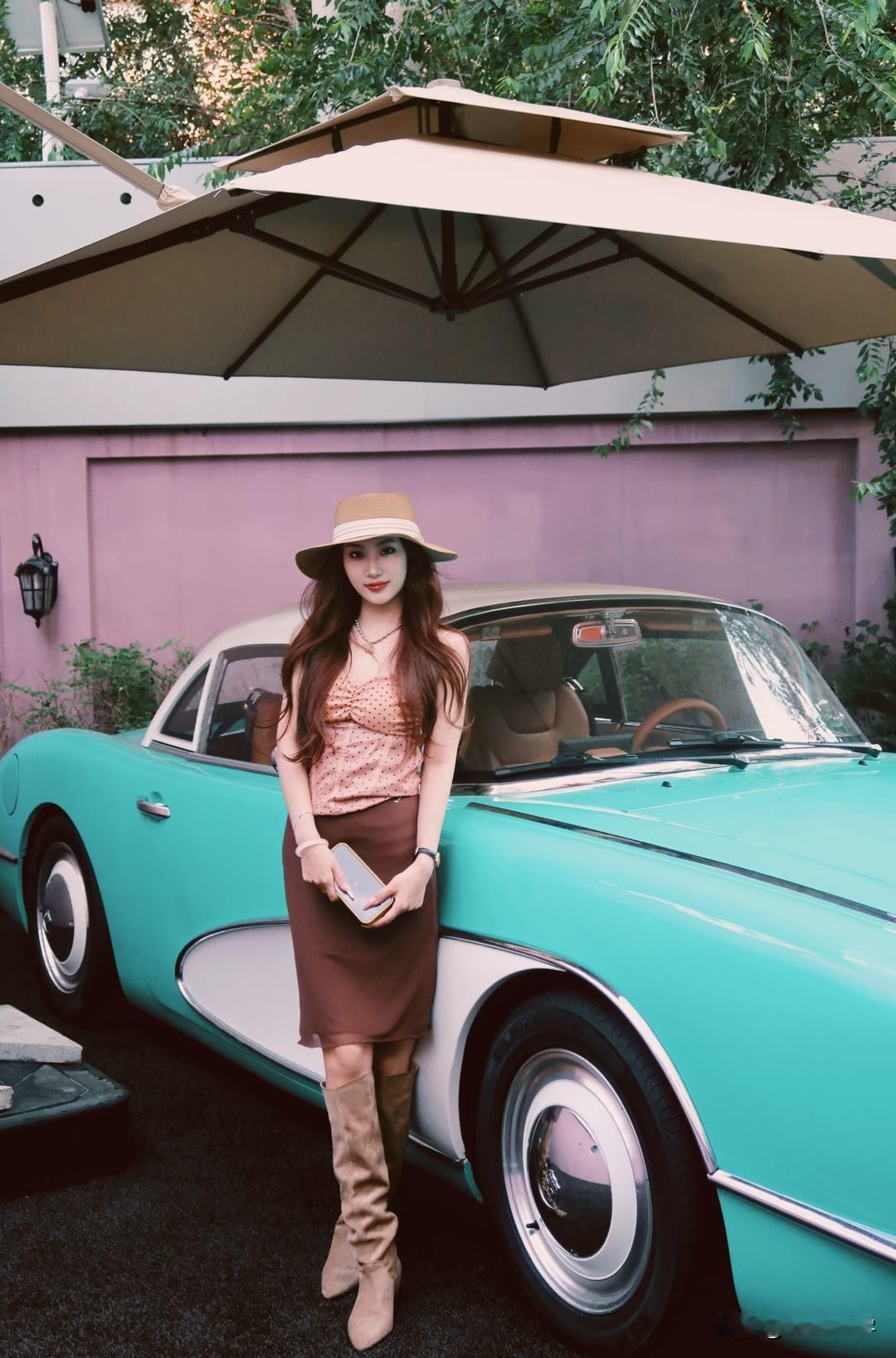 优雅的女孩站在复古餐厅里。女生打卡餐厅