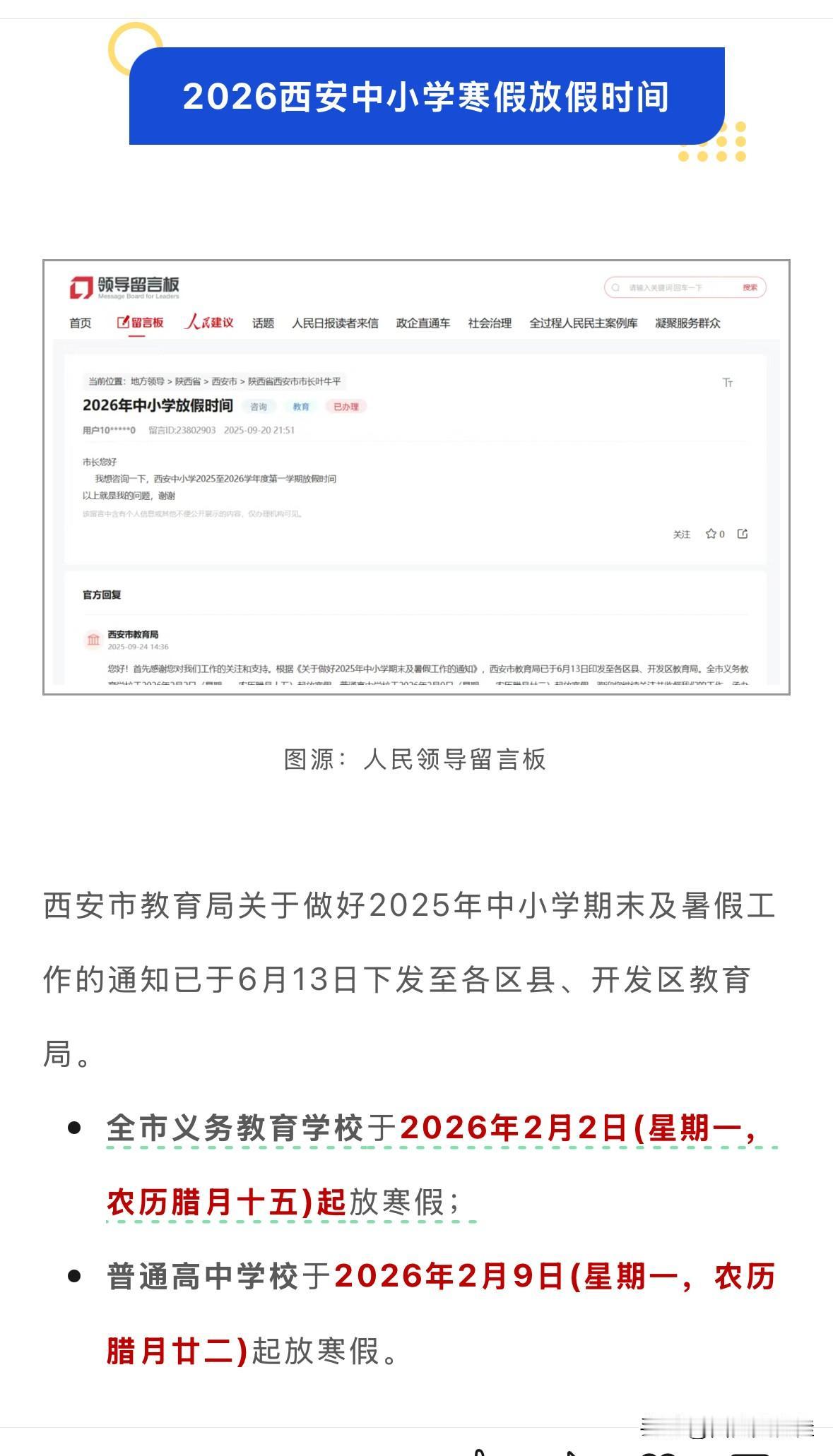 西安中小学生寒假放假时间安排!家长们可以报班了,可以订票了,可以计划孩子们的寒假生活了[大笑][大笑][大笑] 中小学假期安排 寒暑假安排 中小学假期安排