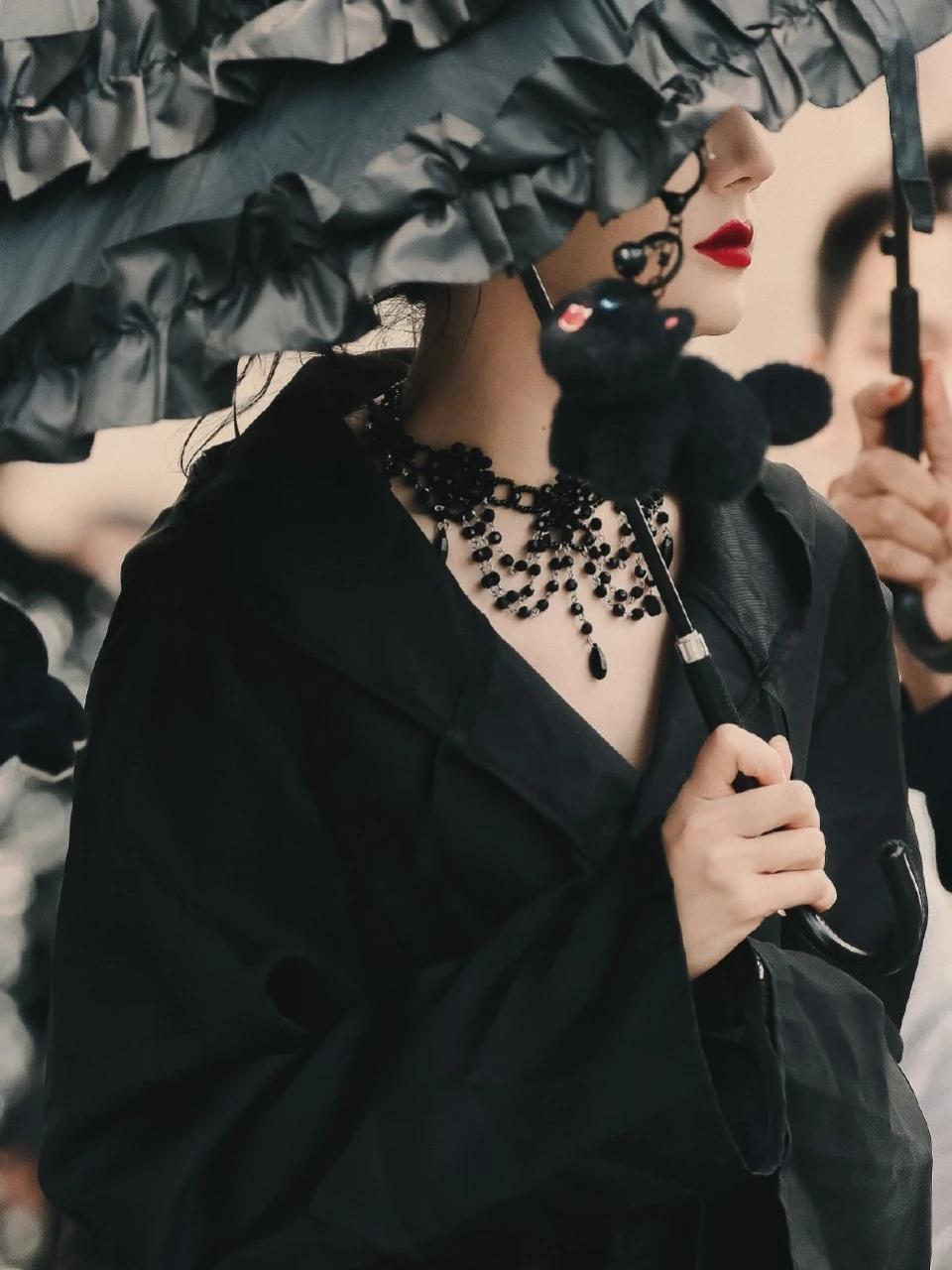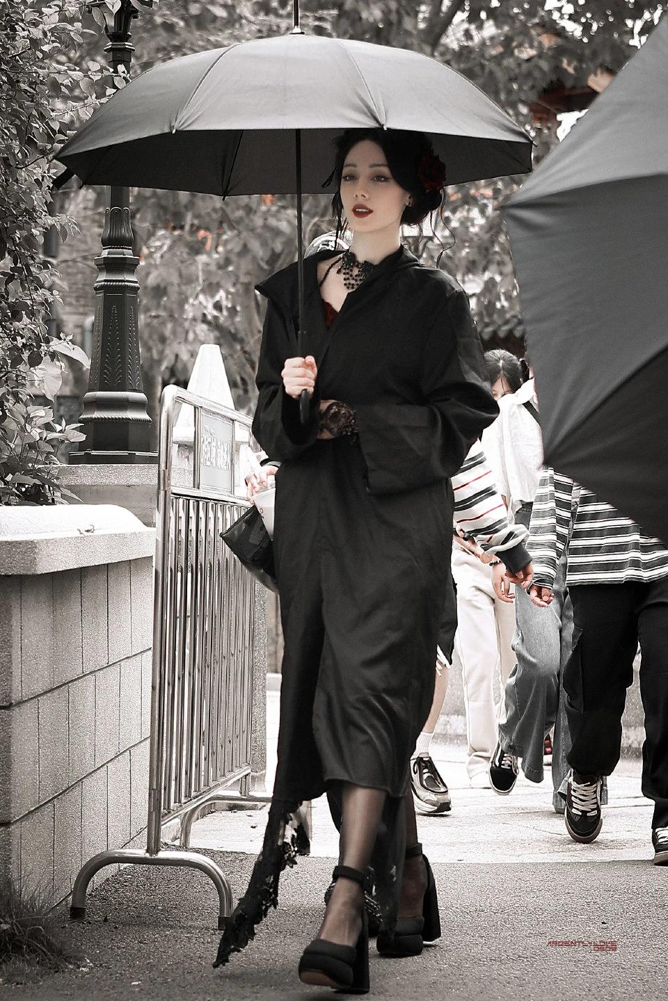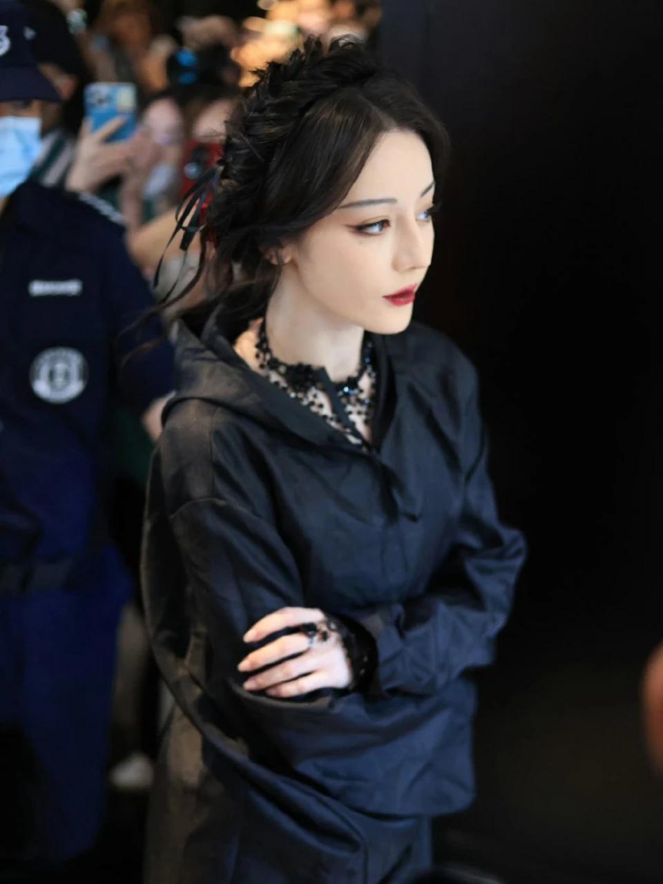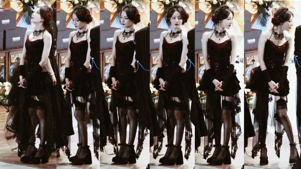 迪丽热巴这个造型真的很绝啊!黑色加暗红色,还头戴一朵玫瑰🌹,简直暗夜女王那味有