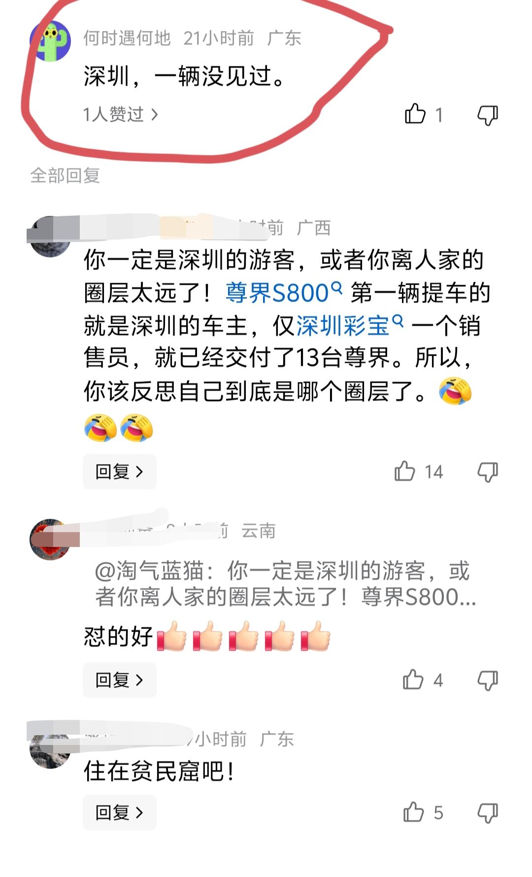 有人说,他在深圳没有见过一辆尊界,很快,博主“新渠道李霸天”就把尊界S800在2025年9月销量Top20城市分布图做出来了,深圳的尊界车主还真不少。 从尊界S800在2025年9月Top20城市销量分布来看,深圳的尊界车主最多,深圳9月份一共销售了180辆尊界,占比9%。其次是广州(124辆,占比6%)、上海(93辆,占比5%)。经济越发达、消费能力越强的一线和新一线城市,对该尊界S800的认可度相对越高。 从尊界S800的市场布局和消费群体上看,尊界主要面向一线、新一线城市的中高端消费群体,这些城市的消费者对汽车智能化、品质化需求较高,符合尊界S800在产品力(如智能化配置等)上的定位。 而且,尊界车主涵盖一线、新一线、二线、三线城市,其中一线和新一线城市占据多数席位,说明鸿蒙智行对尊界在中高端市场的布局更侧重经济发达、消费能力强的城市层级。华南、华东地区是其核心市场,尤其是深圳、广州、上海等经济发达的一线城市,消费能力强,对该车型的接受度高。 不过,虽然尊界S800已覆盖部分二线、三线城市,但销量占比较低,说明下沉市场还有渗透空间。华为入局智驾的鲶鱼效应 尊界 江淮汽车 尊界汽车 尊界s800