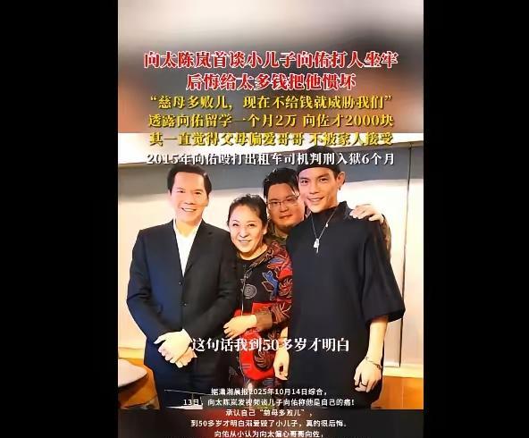 向太没说一句“你行”,却把30个亿的项目塞进向佐手里。 不是给钱,是给路。 青年导演孵化计划,他当总监,持股19%——这哪是安排工作,分明是把家族的未来,亲手交到他手上。 没人再提他“不红”。 红不红,不重要。 重要的是,他能扛事。 向佑呢? 分红照拿,公司门不进。 向太不骂人,也不哭穷,直接拉一道防火墙。 慈母的锅,她背了;败儿的坑,她填了。 现在,轮到规矩说话。 郭碧婷没上热搜,却成了公益理事。 带孩子学表演,发奖学金,不靠老公,不靠婆家光环,靠的是向太一句:“你值得。 ” 这不是豪门内斗,是老江湖的布局。 一个儿子,用股权证明价值;一个儿子,用规则守住底线;一个儿媳,用责任换尊重。 向太没喊口号,但每一步,都踩在人心上。