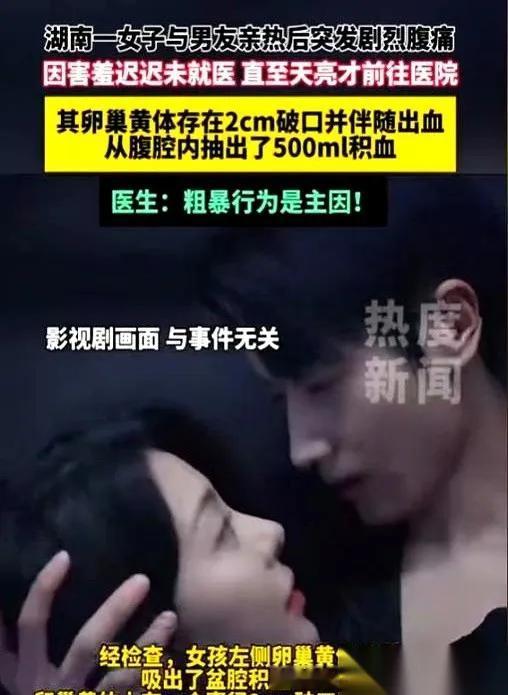 “医生从她肚子里抽出500毫升的血,差不多是一整瓶矿泉水那么多”小姑娘与男友异地恋,今天见面了,两人在一起很亲热,小姑娘说她肚子疼,但没有告诉男友。 回家后,小姑娘一个人在家越疼越厉害,还是没有告诉男友。第二天疼得受不了,男友把她送到医院,检查后大夫说黄体破裂大出血。 “要是再晚来一步的话,就不只是500毫升的血了,可能要500毫升以外的器官都要给她拿出来。”医生一边抽血一边调侃男友,“下次见面要温柔点啊!” 黄体是女性每个月生成的临时器官,特别是在月经前最脆弱,稍微不注意就会破裂。 姐妹们记住身体健康最重要,有剧烈的疼痛感,一定要及时就医,不要害羞,更不要耽误啊! 麻烦看官老爷们右上角点击一下“关注”,既方便您进行讨论和分享,又能给您带来不一样的参与感,感谢您的支持!