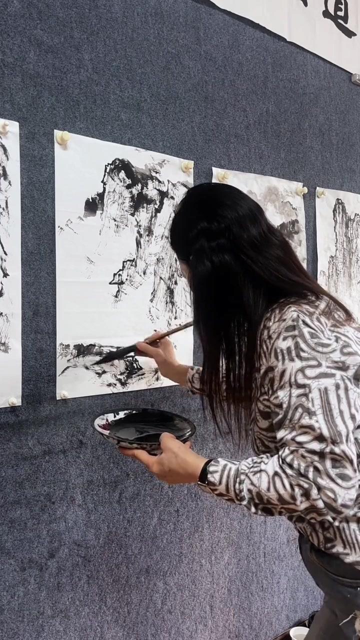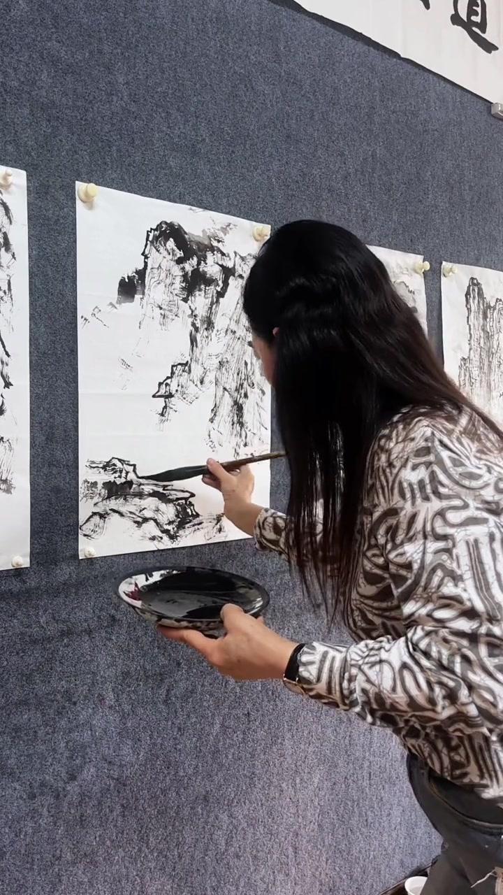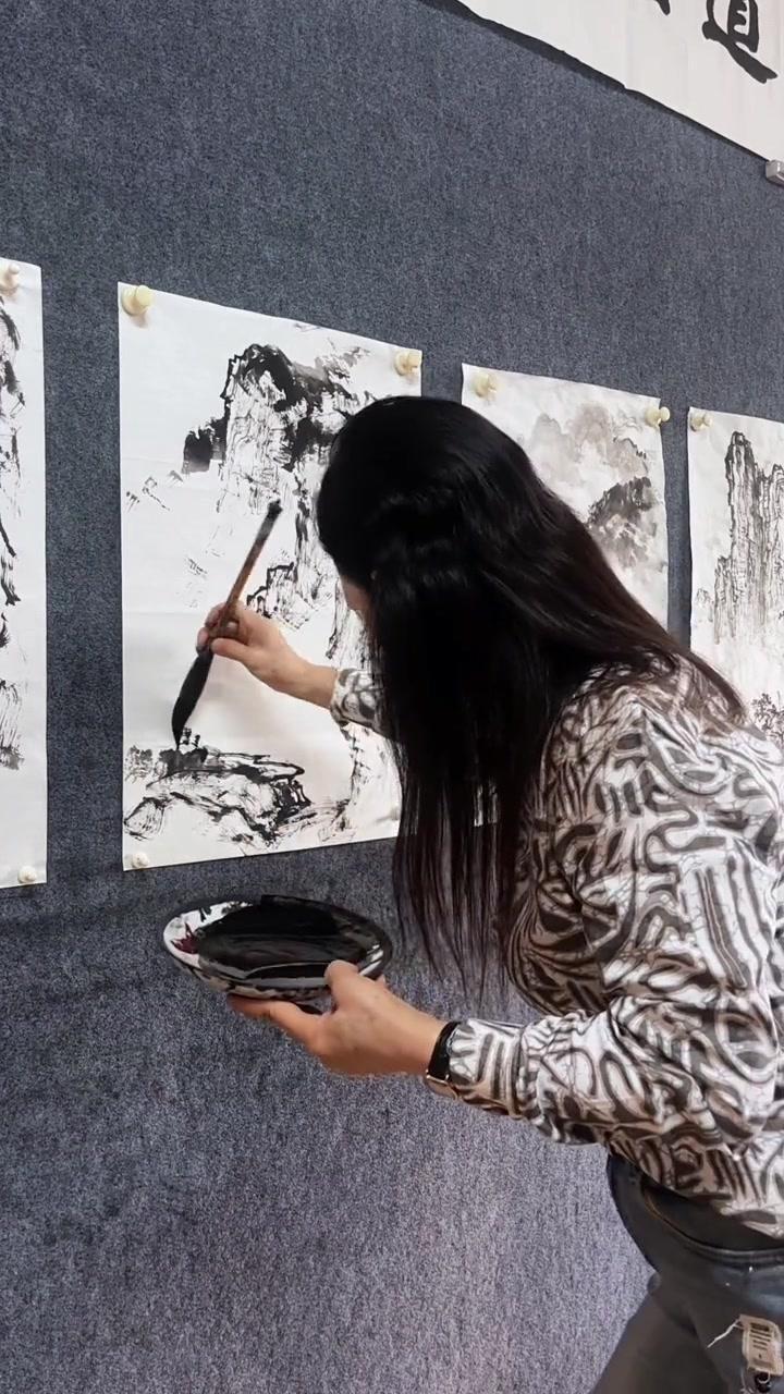🖌️以线造型是山水画的灵魂,用线时要避免过于光滑。下笔时保持手腕灵活转动,线条