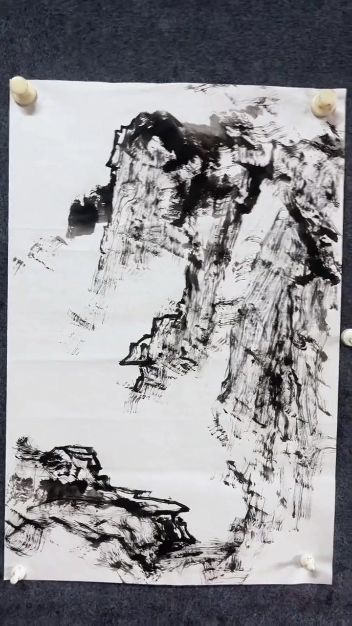 🖌️以线造型是山水画的灵魂,用线时要避免过于光滑。下笔时保持手腕灵活转动,线条会自然产生粗细、轻重变化。勾勒轮廓时,线条可稍微卡顿,像老树枝干,有顿挫感反而更生动。 🪵皴擦的线条要顺着山石结构走,穿插有序,画面才能有层次。
