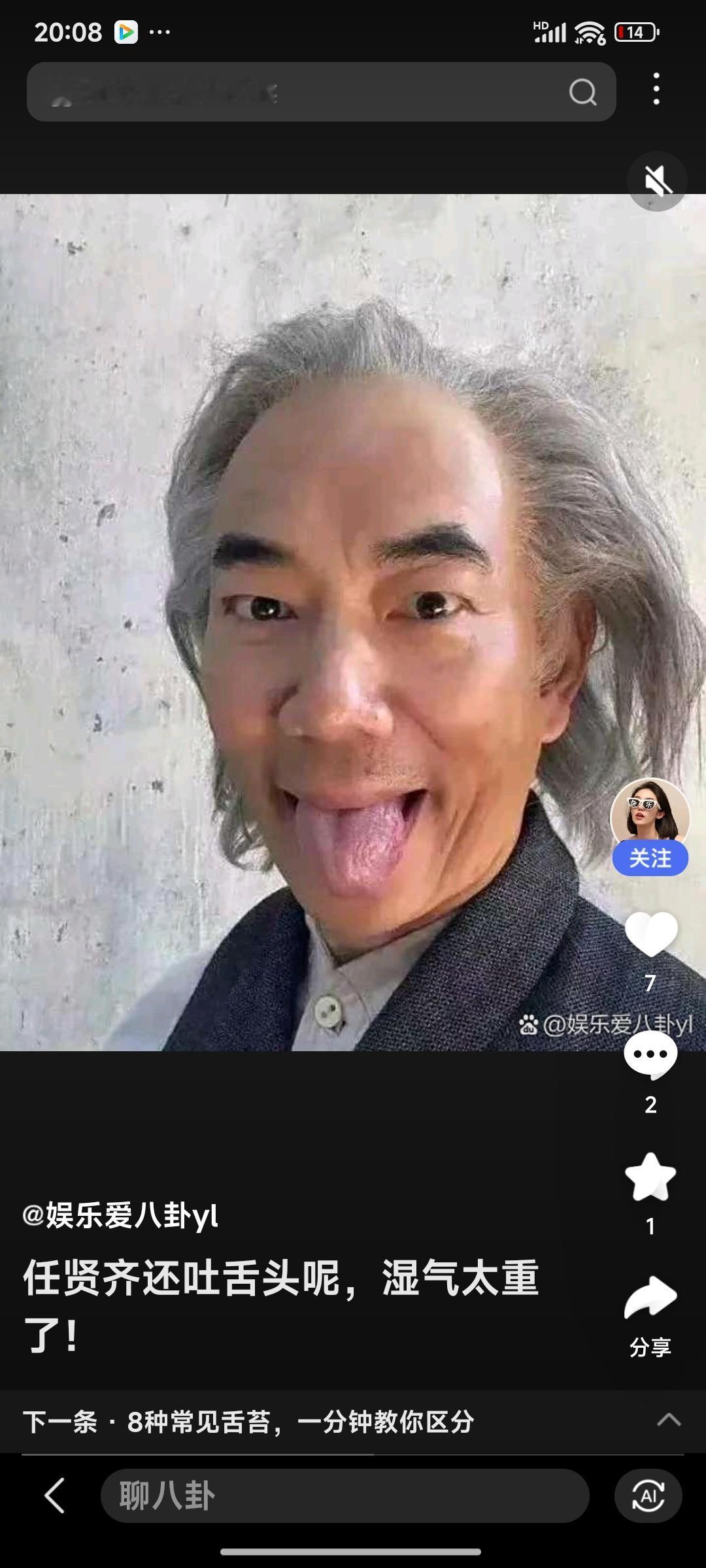 我实在难以相信,年未六十的任贤齐竟会如此显老。 照片里的任贤齐,一头白发,发际线已然后移,皮肤黝黑且粗糙,两条又黑又粗的眉毛格外醒目,眼皮浮肿,还伸着舌头,看上去极为突兀,一副邋遢模样。 在我的印象中,任贤齐向来自律,身材管理得相当不错。 一个自律之人,断然不会过得如此潦倒。 唯一的解释是:这或许是他为某个电影角色做出的造型吧!