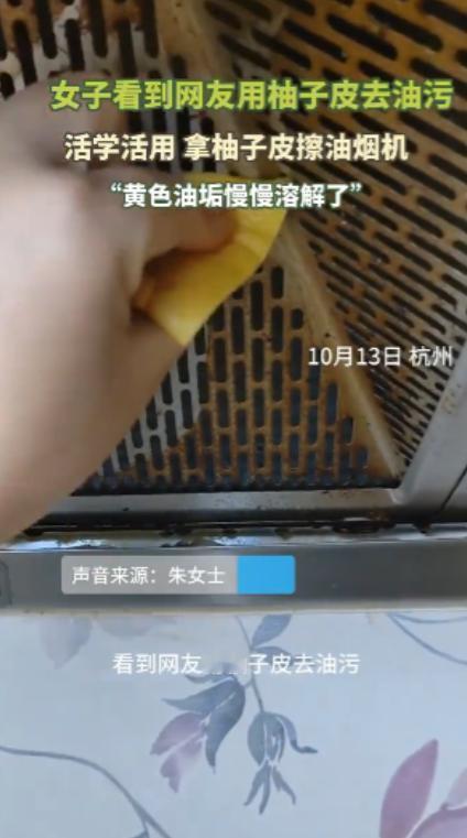“长见识了!”10月13日,浙江杭州,一女子玩手机时,发现有人用柚子皮去油污,效果看起来非常好,刚好家中有柚子,她就撕下一块皮去擦油烟机,没想到难除的黄色油垢真的一点点的溶解了!网友:这又是什么原理? 这事说起来挺巧,她刷手机时刷到柚子皮去油污的视频,刚好家里有吃剩的柚子。 她随手撕下一块柚子皮,往油烟机的黄色油垢上擦了擦,没想到油垢真的慢慢化了。尤其是油烟机滤网,平时积的厚油垢,擦完瞬间清爽了不少。 朱女士又试了其他地方,发现用柚子皮擦油污不仅省力,效果还特别明显。之后她把这段经历分享到网上,很快引来不少网友关注,大家都好奇这背后的道理。 其实这招在网上早有分享,关键就藏在柚子皮本身的成分里。柚子皮里含有天然的柠檬酸和挥发油,这些成分能帮着分解油脂。 而且它不像化学清洁剂那样有污染,用起来也不用担心伤手,堪称环保清洁助手。 不过要说明白,这招不是万能的。如果油污刚沾上没多久,比较轻薄,柚子皮擦起来效果特别好。但要是积了好几年的老油垢,光靠柚子皮可能就不够用了,得配合其他方法。 除了去油污,柚子皮还有不少实用的小妙用,很多人可能没留意过。把柚子皮切成小块煮水,趁热倒进下水道,既能去油污还能除异味。 用柚子皮内层的白瓤蘸点盐,还能擦干净洗碗池里的油渍,不用洗洁精也行。 晒干的柚子皮磨成粉,混点橄榄油,擦木质家具能增亮还留香味。甚至往冰箱、鞋柜里放块新鲜柚子皮,异味很快就能被吸附掉。 这些用法看着简单,却藏着生活智慧,还能省下不少买清洁剂的钱。 现在不少人开始用厨房食材做天然清洁剂,比如白醋配小苏打,清洁力也很强。但用柚子皮这类天然材料清洁,要记得先把表皮彻底洗干净,避免农药残留。 朱女士的经历也提醒大家,网上的生活妙招不用盲目信,但也别轻易否定。很多看似神奇的方法,其实都有实实在在的道理,试一下说不定能省不少事。 当然,它没法完全替代强力清洁剂,根据油污情况选对方法才最重要。 你有没有试过用柚子皮做清洁?或者你还有什么藏私的家务小妙招?欢迎在评论区分享,让大家都学两招实用的生活技巧。 信息来源: 齐鲁晚报-齐鲁壹点《活学活用!女子刷视频学着拿柚子皮擦油烟机“黄色油垢慢慢溶解了”》
