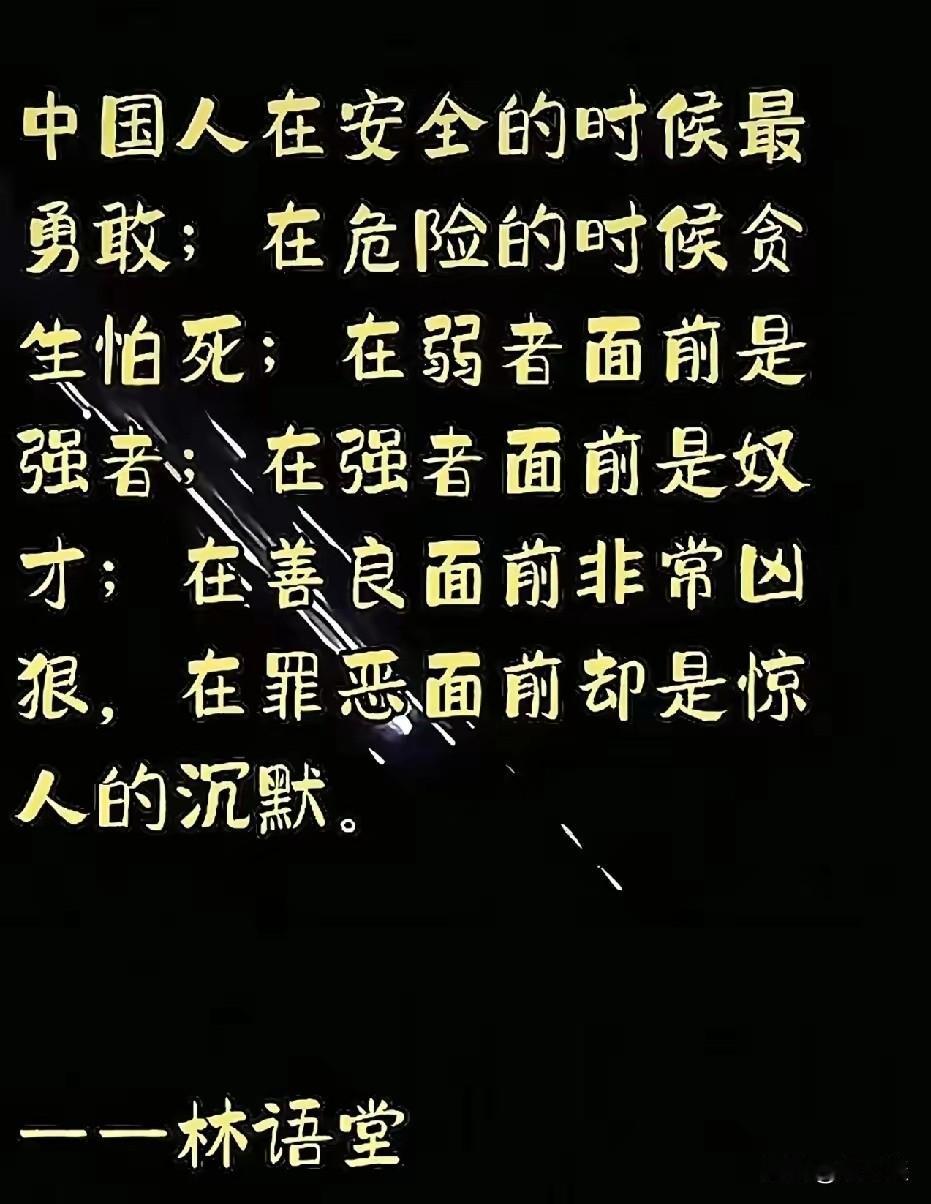 林语堂老先生在《吾国与吾民》中对国民性格进行的评价,国民在不同的时候呈现出截然相反的态度!真的是这样吗其实并不全对,国人并不是都是这样的 不能因为个别或者少数几个这样,就把其认定是国民性格!每个个体都是独一无二的存在!这个评价太偏激了!如果都是这样,社会岂能前进,岂能和谐!
