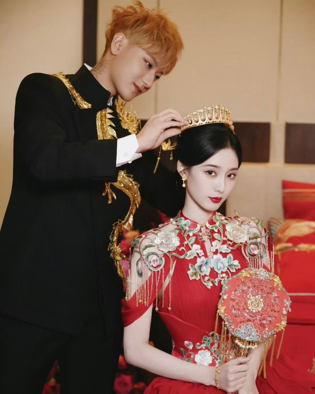 黄子韬给徐艺洋戴黄金皇冠黄子韬中式敬茶环节给徐艺洋戴的DR千金冠设计不仅美