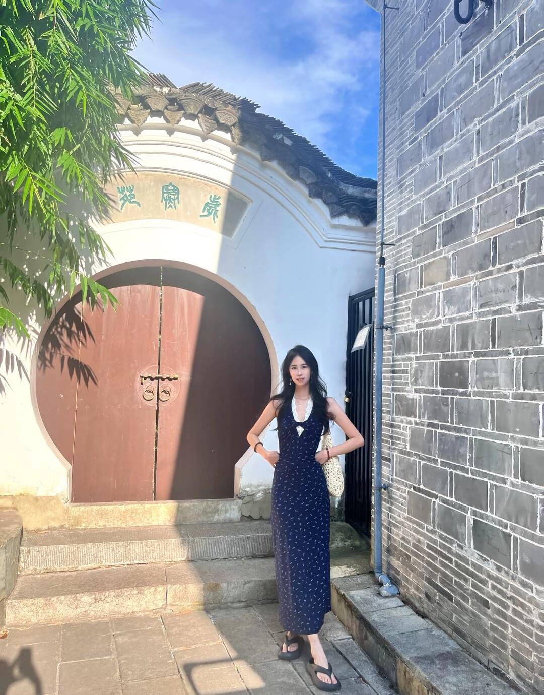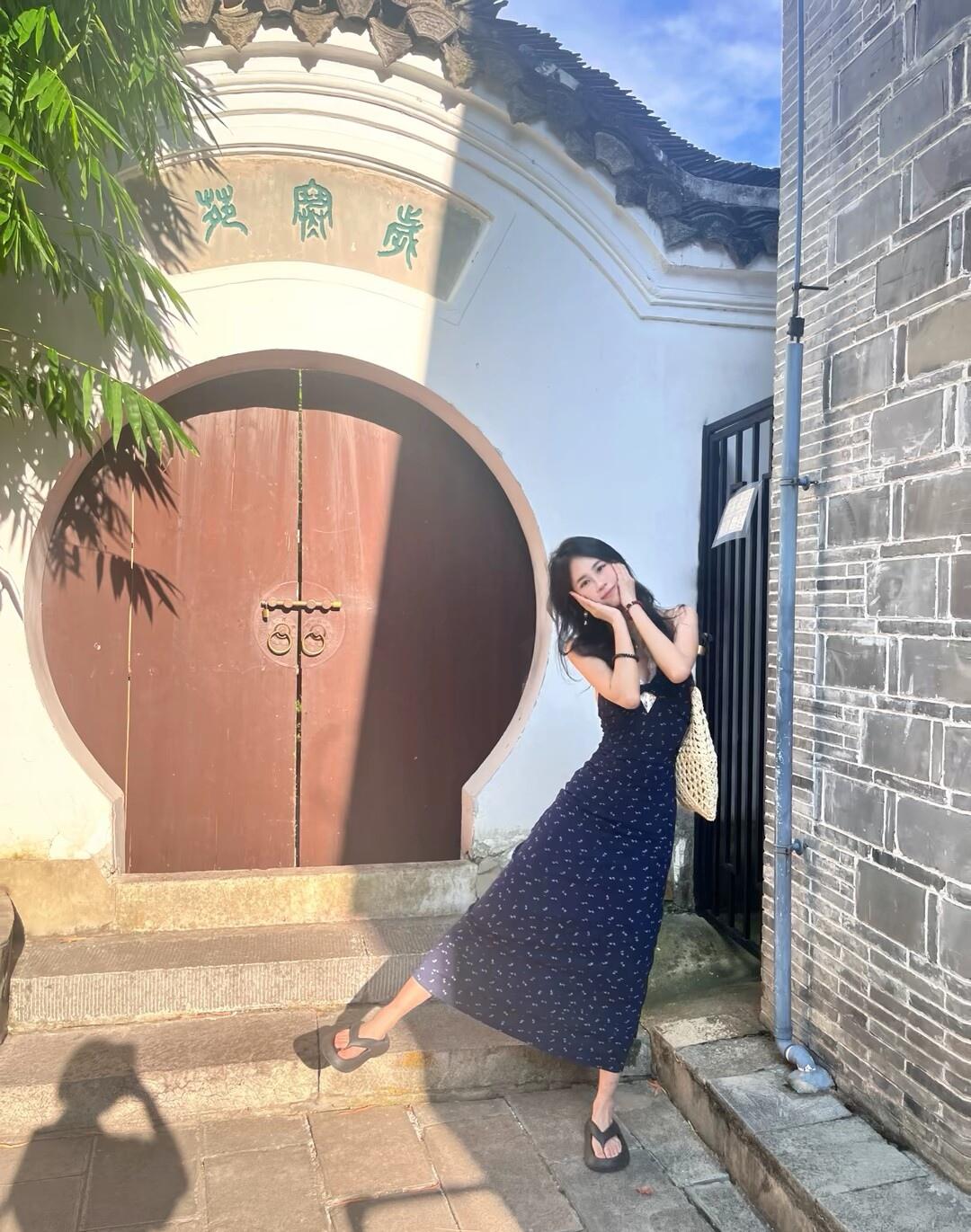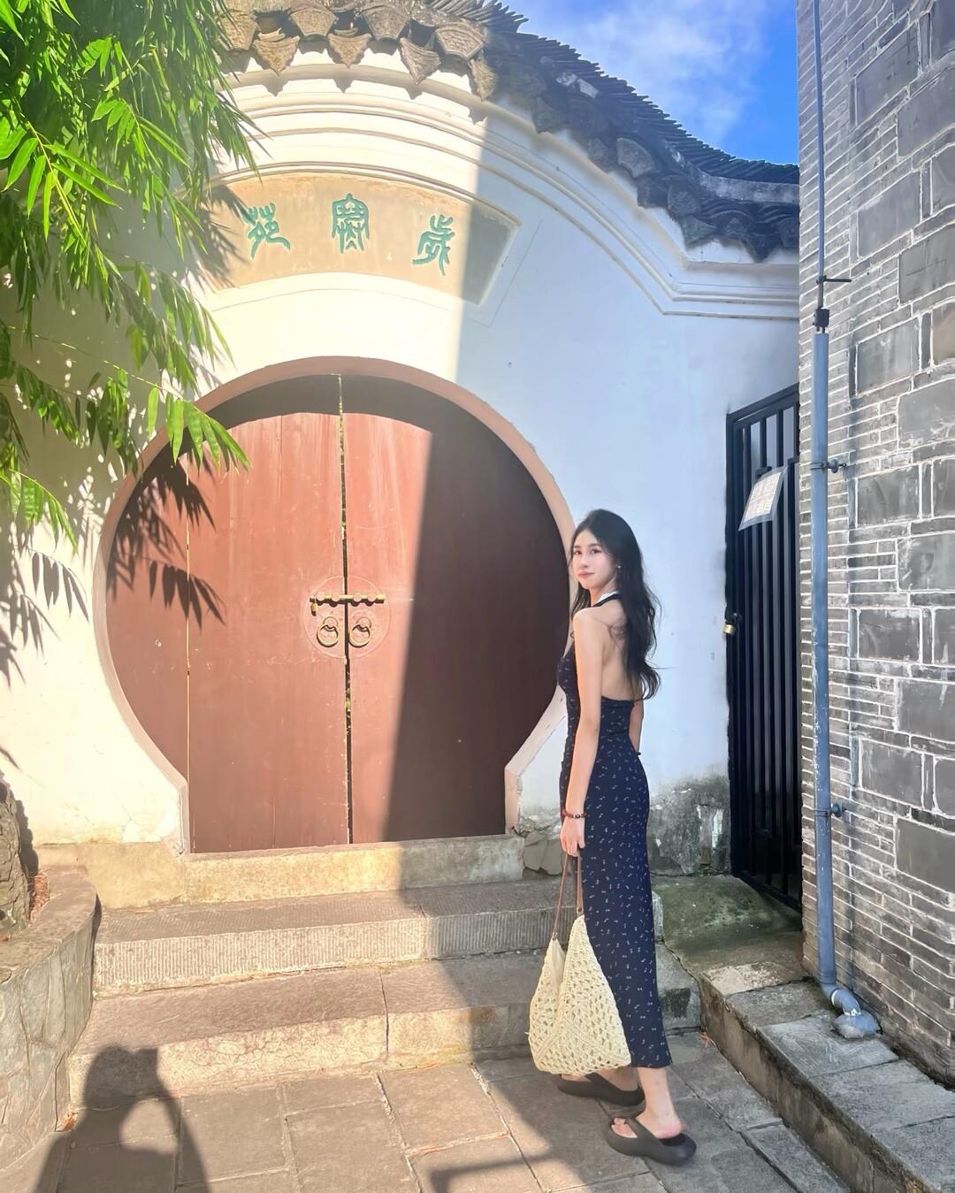古风庭院中的优雅女子,静谧时光的美好瞬间。