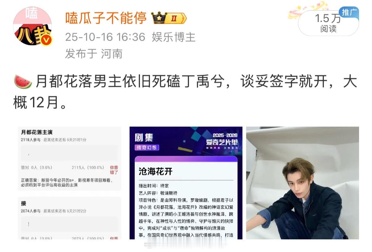 🍉《月落花都》定下来了是李兰迪和丁禹兮,看来新丽死磕丁禹兮成功了[傻眼]