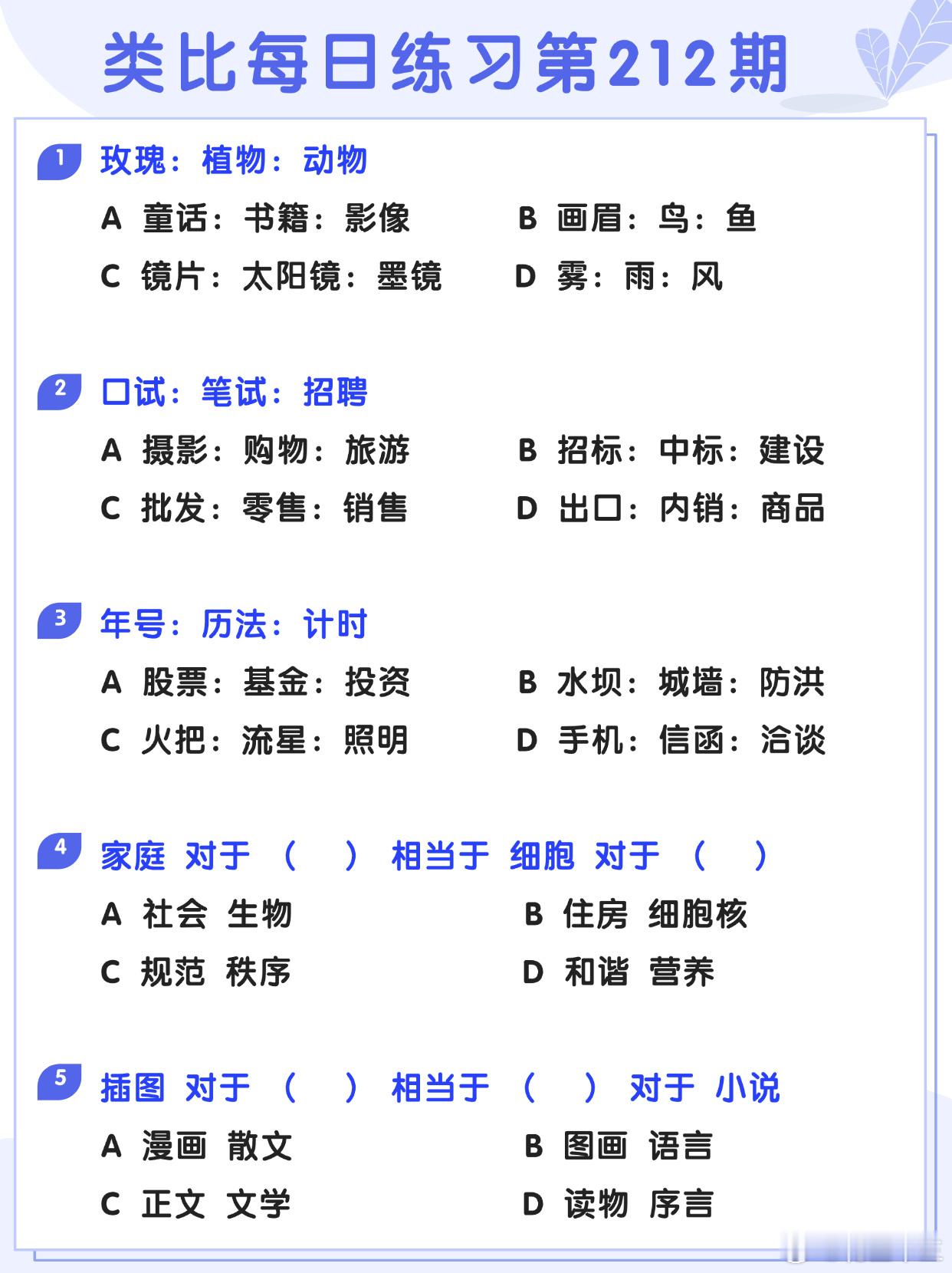 图推类比每日练习第212期图推难度:☆☆类比难度:☆☆开学元气加油站决战公考省考