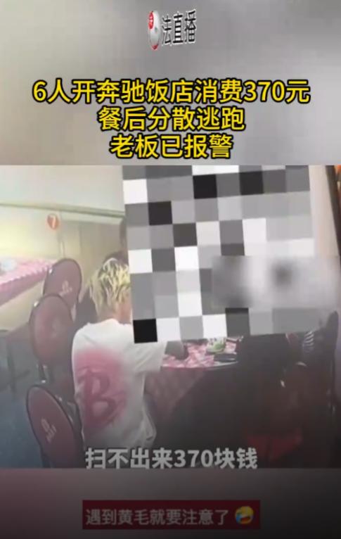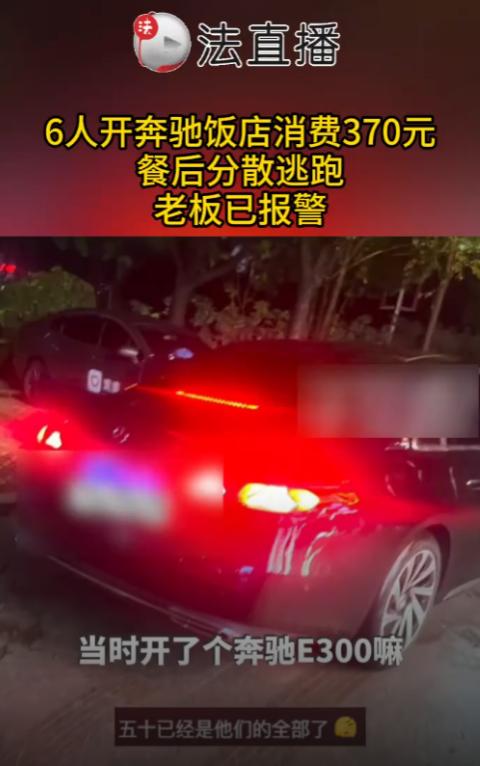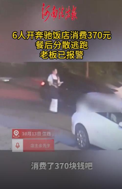 “白嫖翻车了!”10月13日,江西抚州,一黄毛小伙开着一辆奔驰豪车,一行6人来到一家饭店吃饭,没想到吃完之后却拒不付款370元餐费,而是直接开车逃跑,网友:死要面子活受罪! 这事发生在抚州一条美食街上的餐馆里,老板老周(化名)的店主打家常菜,客单价大多五六十元,那天这桌370元的消费算中等偏上。 6个男子开着黑色奔驰到店,点了三荤两素加一箱啤酒,全程有说有笑,看着挺体面。老周压根没多想,开奔驰的人哪能差这几百块饭钱。 吃到快9点,这伙人开始不对劲。先是两人说去车里拿东西,慢慢挪到门口。接着又有两人说去隔壁买烟,也往外走。 最后剩下的两人说要结账,却磨磨蹭蹭半天不掏钱。老周一看苗头不对,赶紧跟着追出去,喊他们先付钱再走。 此时奔驰车已经启动,副驾下来一个人说马上扫码,掏出手机却半天没动静。就在老周盯着手机时,之前离开的两人突然从旁边冲过来,朝着不同方向跑。 副驾的人趁机往车后座钻,司机一脚油门就冲了出去。等老周反应过来,只收到50块钱,还是其中一人慌慌张张扫的。 监控里能清楚看到这几个人的脸和奔驰车的车牌号,老周立马报了警。他说不是差这320块钱,是这事太气人了。 网友看到这事都议论开了,有人调侃这怕是洗车店的工人偷开老板车出来聚餐,6个人凑不出370块。还有人发现不对劲,一辆车挤6个人本身就奇怪。 其实这种 “打肿脸充胖子” 的事并不少见。之前就有调查显示,八成以上的人觉得身边年轻人 “面子消费” 普遍。 有些年轻人明明经济实力不够,却总想着靠豪车、名牌撑场面。就像这几个开奔驰逃单的,看似光鲜,实则连基本的餐费都付不起。 现在更多年轻人已经变得理性了,不再盲目追求奢侈品,而是讲究 “省钱不降品位”。比起外在的牌子,大家更看重实在的生活。 可总有少数人陷在虚荣里,觉得有豪车就是成功,把诚信和责任抛在脑后。他们忘了,逃单看似是小事,却丢了最值钱的人格。 监控拍得清清楚楚,车牌号也有,警察找到这几个人并不难。但比追回餐费更重要的是,这些人得明白装出来的面子撑不起人生。 真正的体面从来不是靠车和衣服堆出来的,而是做事有担当、做人讲诚信。370 块钱逃得了一时,留下的污点却抹不掉。 你身边见过这种 “死要面子活受罪” 的事吗?对于这种开豪车逃单的行为,你觉得该怎么处理才解气?欢迎在评论区聊聊。 信息来源: 河南法治报《6人开奔驰去餐馆消费370元逃单,老板:追出去只扫了50元》