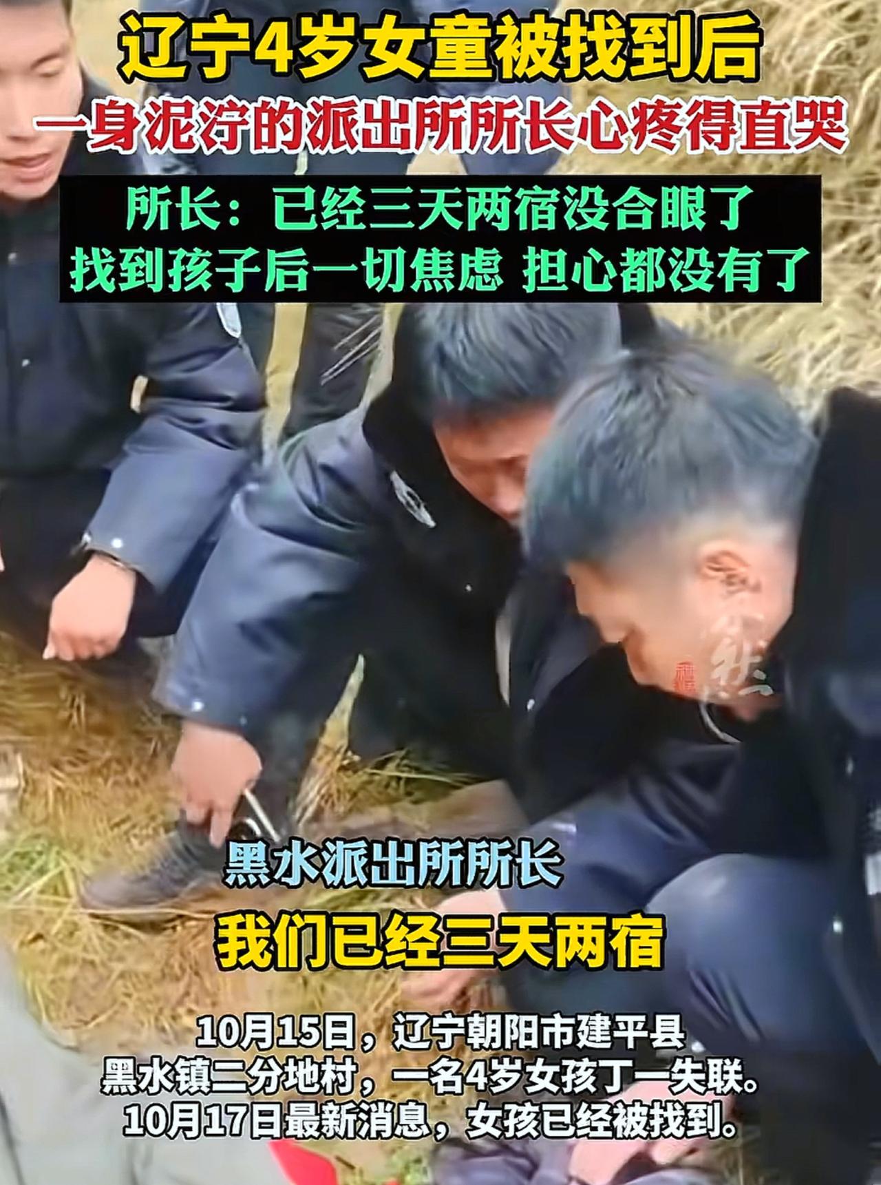 这下出名了, 不仅辽宁,全国人民都知道了辽宁建平的派出所所长王威为了守护这个年幼的生命,硬是44小时没合眼。 天寒地冻的4℃,他带着全所人扎进山沟,挨家挨户排查一万多家农户,眼皮打架就用凉水泼脸,脚冻僵了就原地蹦跳,眼里就盯着“找到孩子”这一个目标。当在草窝里看见蜷成一团的4岁女童,平时雷厉风行的汉子,眼泪唰地就下来了。 这眼泪哪是脆弱?是身为警察的责任落地,是团队熬红双眼的辛苦没白费,更是为人父的本能心疼——他自己也有两个孩子,见不得这么小的娃受冻。 现在总有人说“职责所在而已”,可真能把“职责”做到掏心掏肺,把别人的孩子当成自己的娃来急,这样的所长才是真英雄。你身边有没有过这样“把事当事”的普通人?评论区说说,让更多人看见这份温暖。
