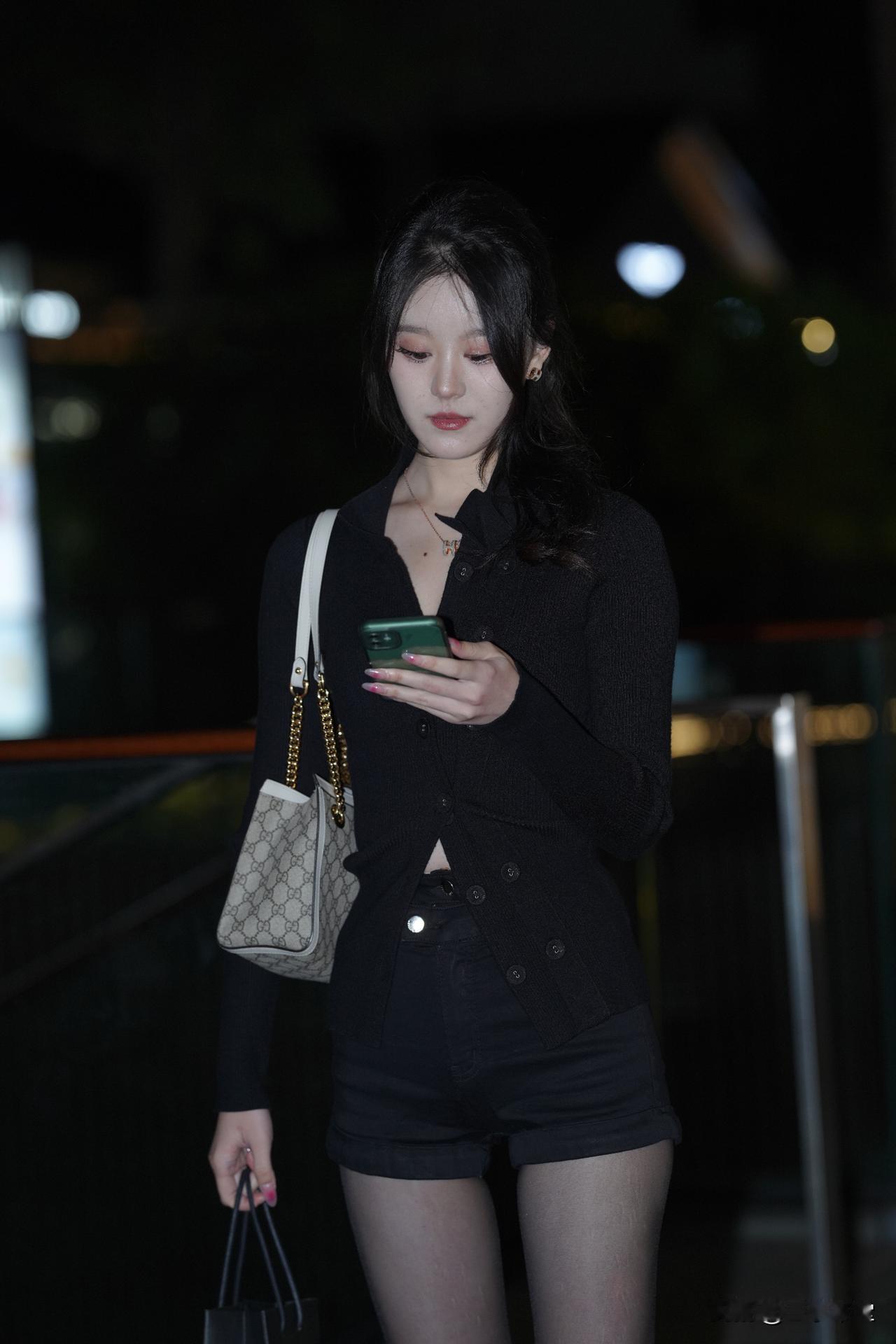 夜拍黑色热裤搭配短靴丝袜美腿小姐姐 !!!分享街拍小姐姐