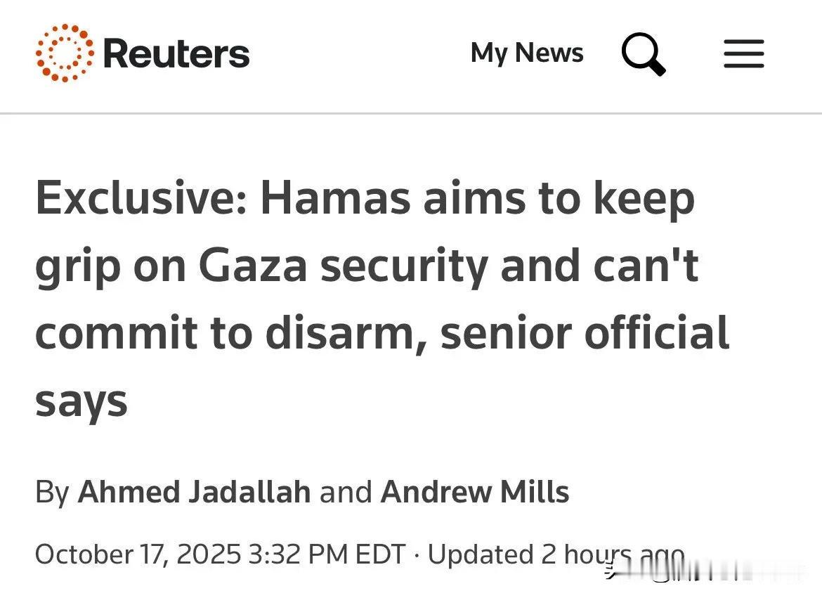 突发消息:哈马斯高级官员穆罕默德·纳扎尔表示,哈马斯打算维持对加沙的安全控制,不会解除武装——这是对@POTUS加沙计划的公然拒绝。 他还表示,哈马斯希望停火“至少3至5年”。 哈马斯并不想要和平。它想完好无损地结束这场战争,以便为下一场战争做好准备。