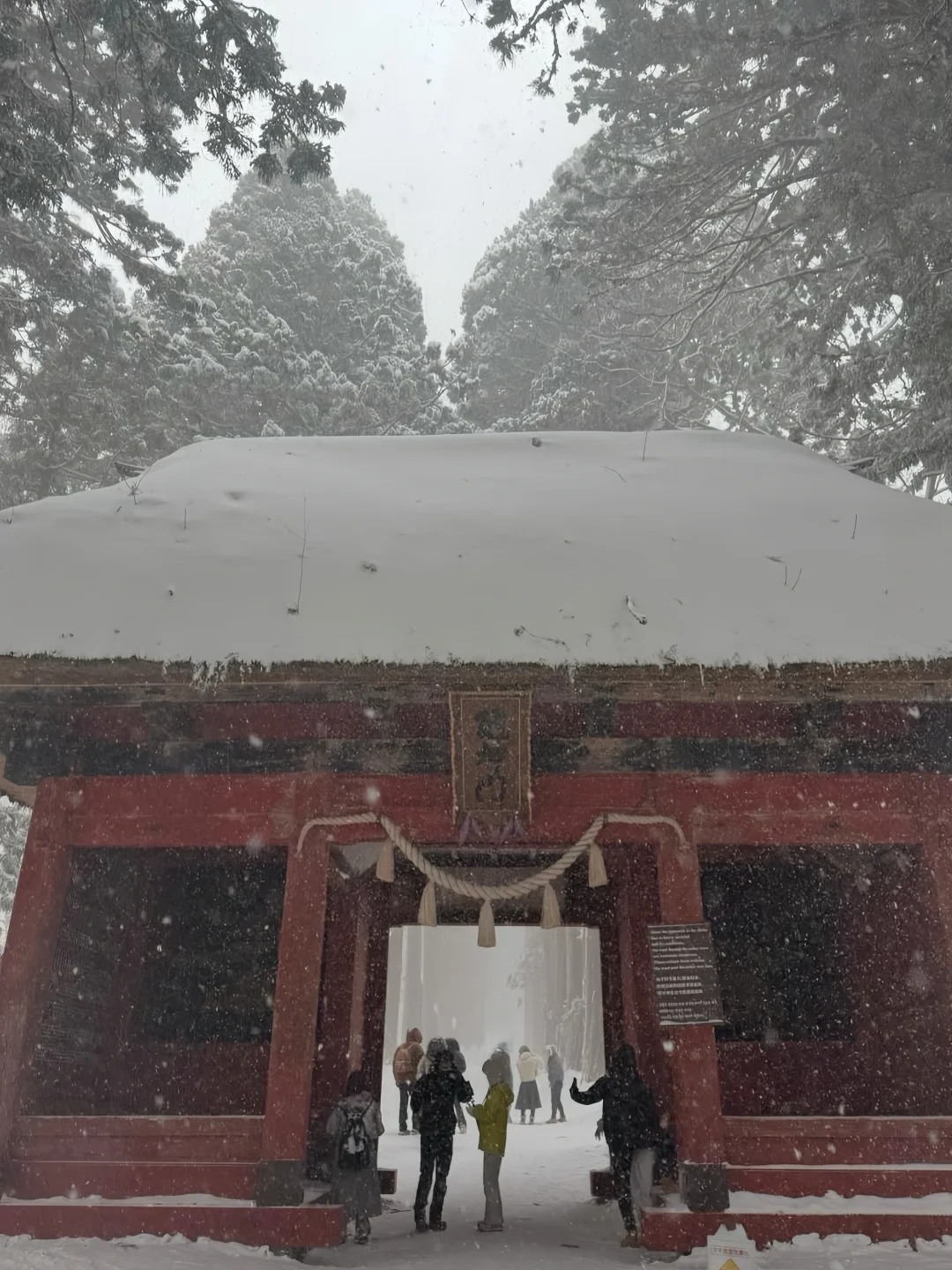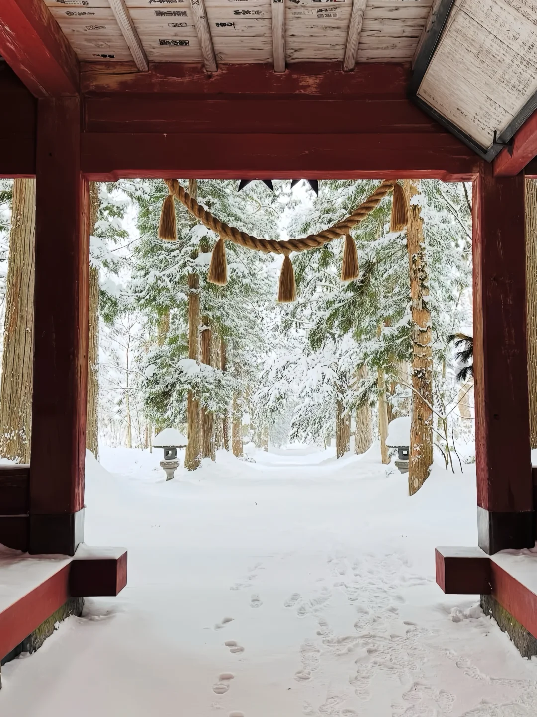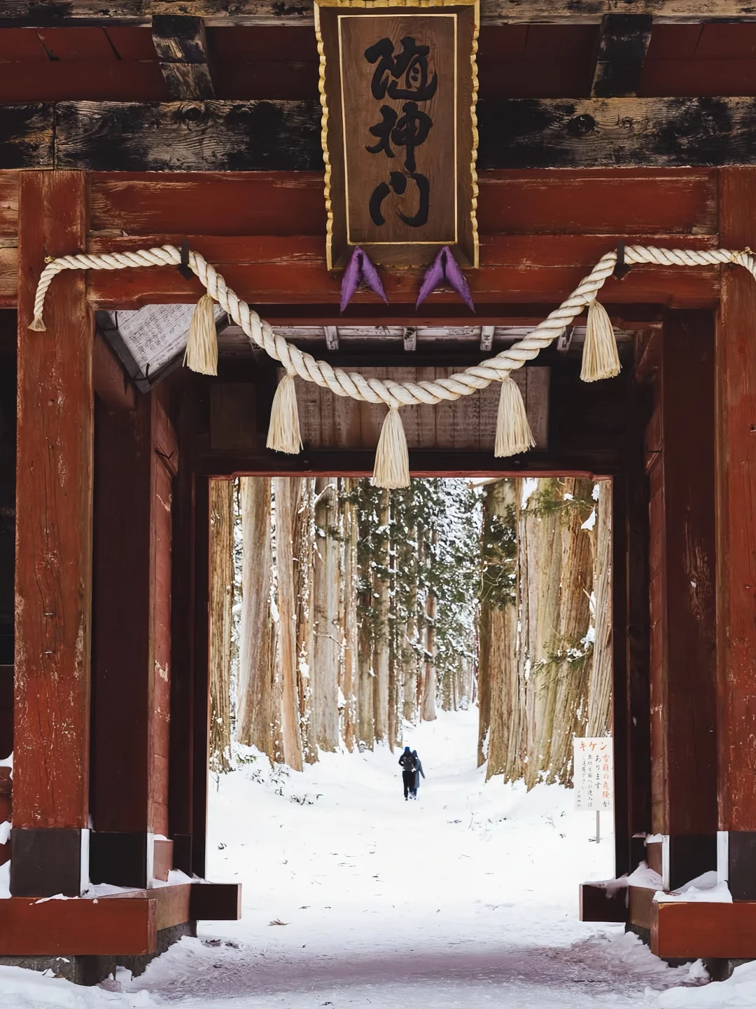 五社依山而建,从山脚到山深,一路串联起神与人的距离。沿着这条通往“神域”的路径,冬雪轻覆杉林,脚步与心意都被净化。