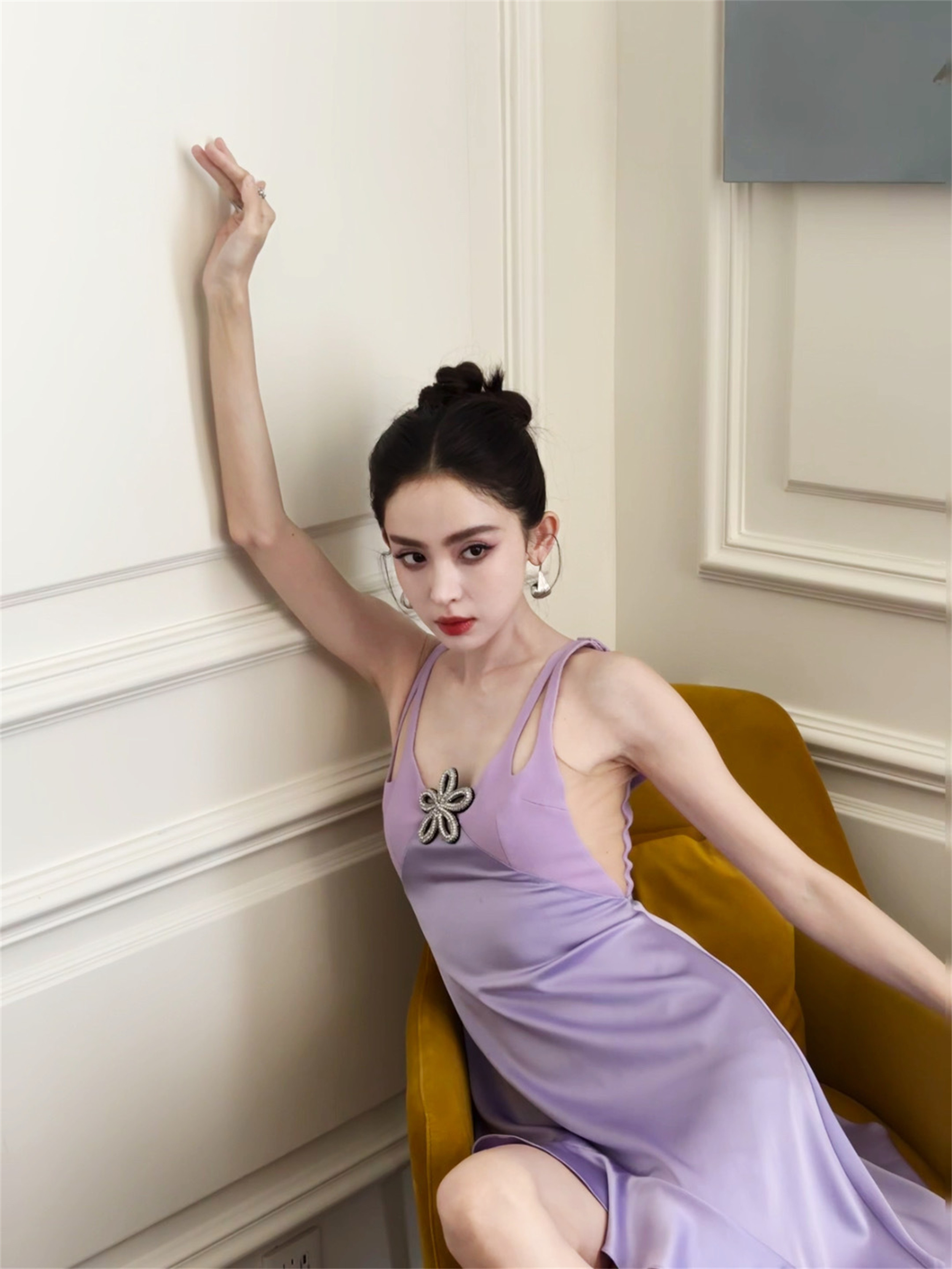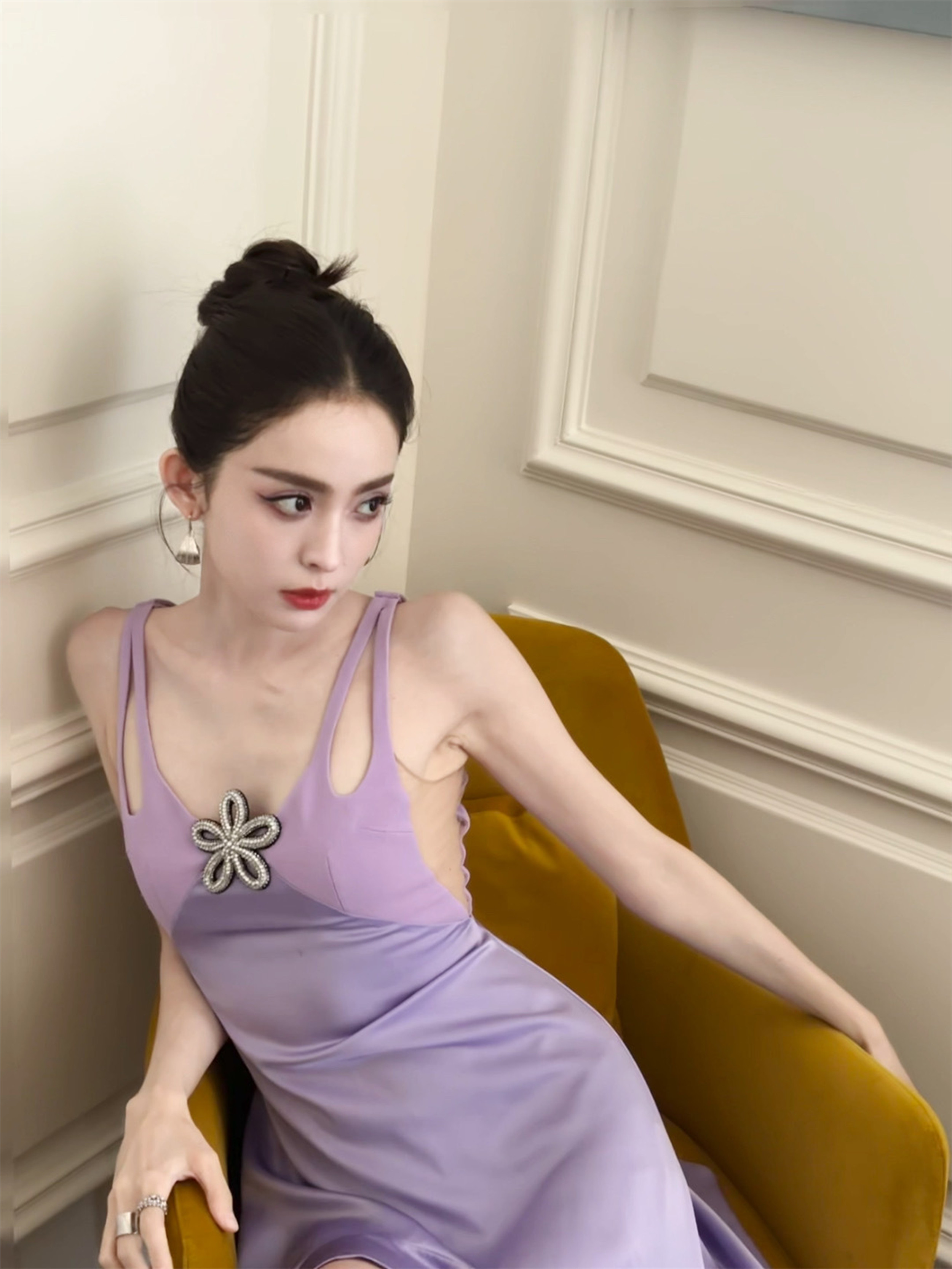 娜扎,美足紫色连衣裙妆造大赏