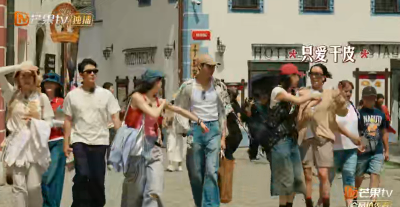 张雅琪边走边往身上擦防晒。龚俊:“哇,妹啊,你这个防晒啊,擦的跟油似的。”走在一