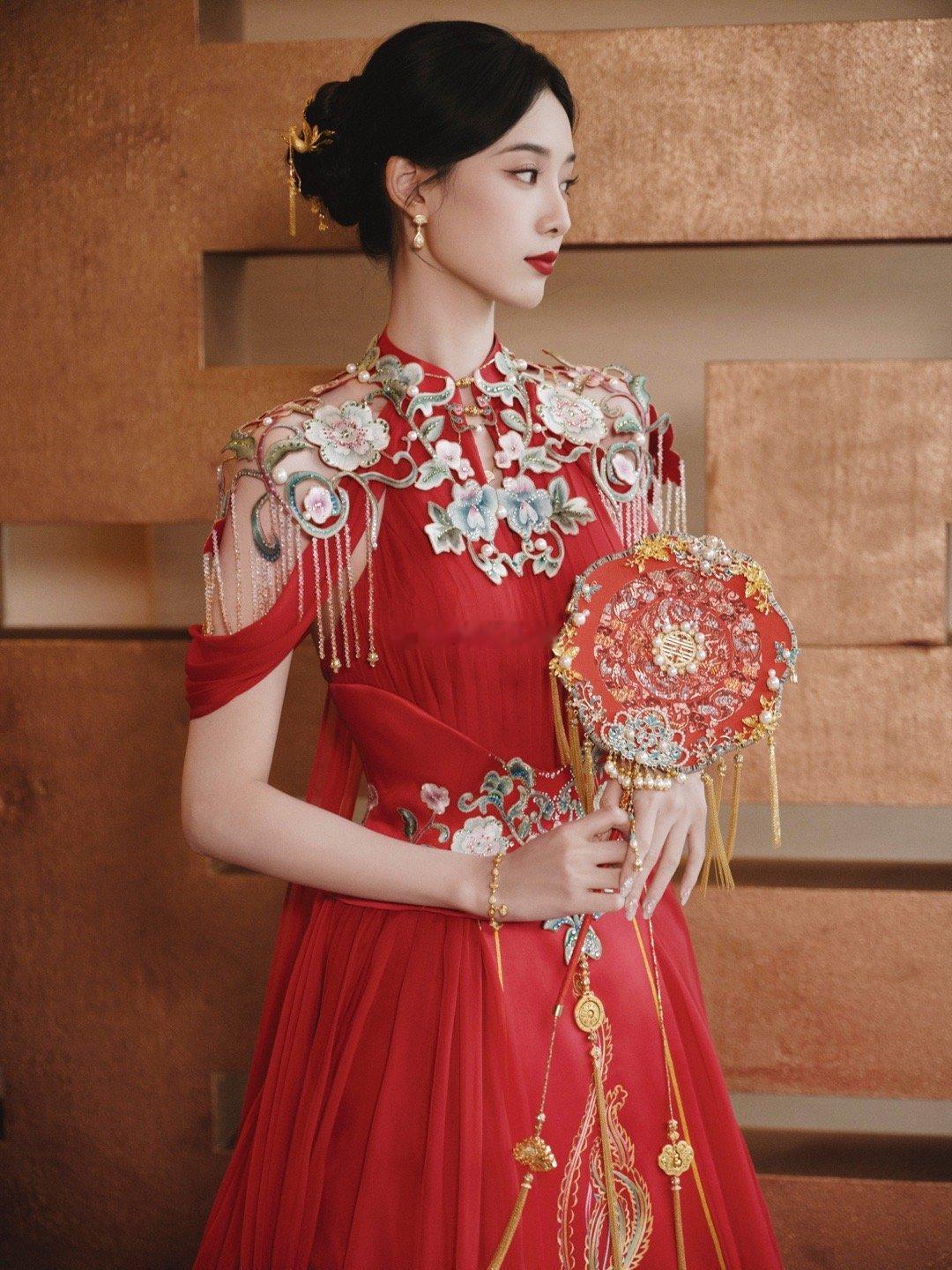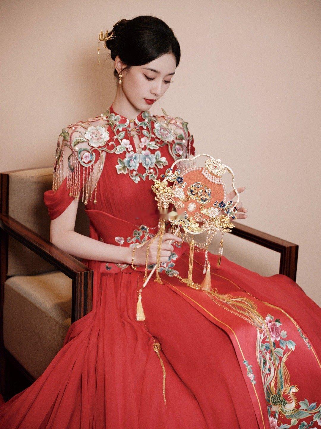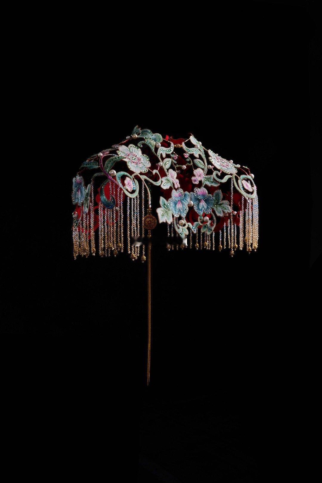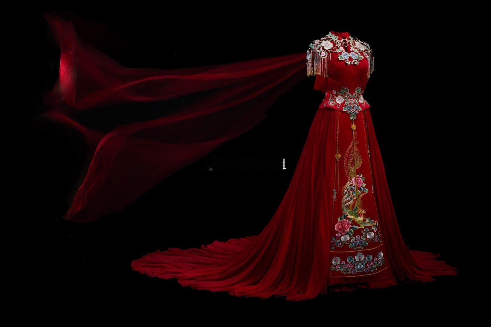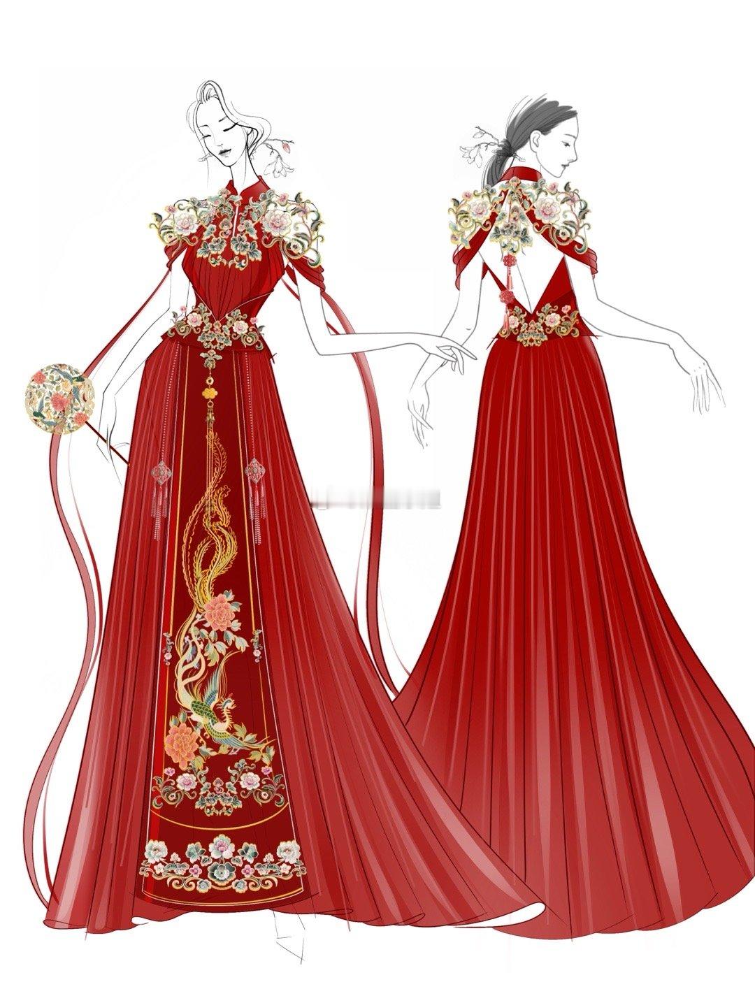 以流失于大英博物馆的清代绣花蝶纹云肩为灵感蓝本,采用传统苏绣工艺历经数月匠心再造,重现东方美学精髓,融合牡丹与凤凰的华贵意象,为婚礼注入了深厚的文化底蕴与时代新意,让流失文物的纹样以这样的方式回归生活,是对历史最美的回应!