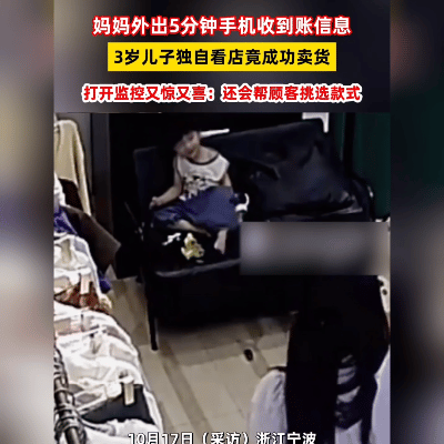 你见过三岁小孩看店卖货的吗?浙江宁波一位妈妈外出取快递短短五分钟,店里的小老板就