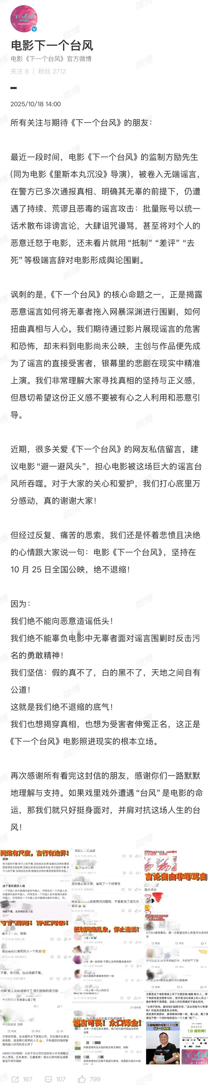 电影《下一个台风》发布声明称绝不撤档,我记得上一个绝不撤档的还是《蛟龙行动》。这