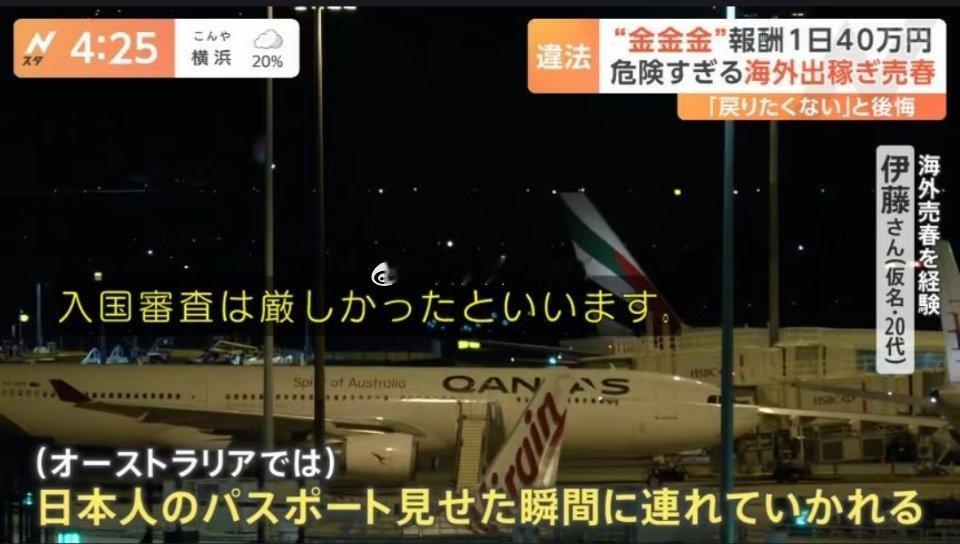 日本媒体表示,由于年轻的日本单身女子在海外打工赚钱,每天能赚40万日元。日本人去澳大利亚的入境审查变得严格起来了。