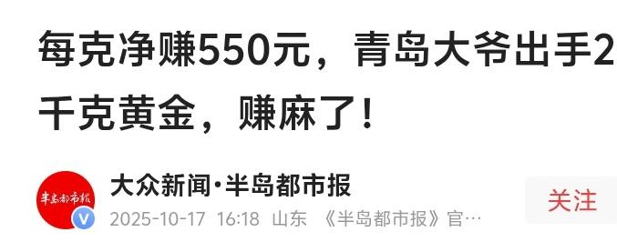 青岛七旬大爷400元囤金变身950元天价抛售!2千克黄金净赚110万背后暗藏三个