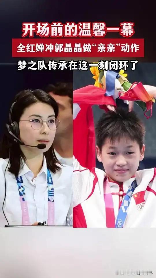 人民日报采访这次,郭晶晶只字未提全红婵,却给全红婵提了个醒! 谁没被郭晶晶与全红婵的跨代温情打动?一个是手握 77 枚金牌、被国际泳联视作跳水教科书的 “女皇”,一个是 14 岁凭五跳三满分惊艳赛场的 “天才少女”,连霍震霆见了全红婵都主动拉着合影。 更让人没想到的是,近日人民日报专访郭晶晶,她没提全红婵名字,却每句话都像在给后辈贴心提醒。 两人的缘分,要从 2021 年东京奥运会说起。当时 14 岁的全红婵第一次站上奥运赛场,却像开了挂一样,五跳三次拿到满分,最终以 466.20 分的超高分刷新世界纪录,成为中国最年轻的奥运冠军。 这惊艳的表现,让所有人都眼前一亮,其中就包括郭晶晶。 在赛后颁奖典礼上,全红婵紧张得手忙脚乱摆弄金牌,郭晶晶特意从台下小跑到她身边,耐心帮她整理金牌绶带和衣服,之后还主动邀请全红婵合影,眼里的赞赏藏都藏不住。 到了 2024 年巴黎奥运会,两人的身份有了变化,郭晶晶坐在裁判席上,要公平公正地评判每一位选手,全红婵则站在跳台上,作为女子 10 米台的卫冕热门,肩负着夺冠的期望。 最终,郭晶晶用裁判的身份见证了全红婵的成长,而全红婵也没让人失望,带着前辈的期许再次拿下金牌。 还有一次在蒙特利尔世界杯上,全红婵有点感冒,郭晶晶看到后,没有丝毫犹豫,直接用手帮她擦掉鼻涕。这种毫无隔阂的互动,让大家真切感受到了体育精神传承中的温暖与力量,网友们都直呼:“这哪里是前后辈,简直是神仙师徒情!”。 不过,随着全红婵的爆红,烦恼也随之而来。 东京奥运会夺冠后,她的名字响彻全国,可高曝光度带来的不仅是关注与支持,还有额外的压力。 大量网友整天盯着她的训练和比赛,稍微某个动作没做好,就可能迎来剧烈攻击,就连她的私生活也被过度关注,过年回老家时,家里的院子被围得水泄不通,有人爬墙拍视频,有人堵在门口要签名,甚至家人出行都有陌生人跟着拍。 这种情况,连郭晶晶的老公霍启刚都看不下去了,在两会期间特意提到,运动员也是普通人,过多关注已经影响到了他们的正常生活。 或许正是深知这种困扰,在近日人民日报对郭晶晶的专访中,她虽然全程没提全红婵一个字,却每句话都像在给这位后辈提醒。 采访里,郭晶晶聊起了自己 23 年的运动生涯,从 7 岁接触跳水到 30 岁退役,她拿奖拿到手软,77 枚金牌、14 枚银牌、4 枚铜牌,还有 4 枚奥运金牌,是中国获得奥运金牌第二多的运动员 但聊到年轻运动员时,郭晶晶重点提到了互联网高曝光度的影响。 她说:“虽然高曝光度能让运动员快速获得关注与支持,但过度曝光会让他们承受额外压力,有时候一些小错误可能被放大,个人生活也会被过度关注。” 这话看似是对所有年轻运动员说的,却精准对应着全红婵当下的处境。 随后,郭晶晶慷慨分享自身经验:“身为运动员,当将外界支持化作奋进动力,学会摒弃无关杂音,心无旁骛地投身于日常训练与重要赛事之中。” 如今她退居幕后,把自己踩过的坑、吃过的苦,变成给后辈的 “避坑指南”,这份用心,远比直白的叮嘱更显珍贵。 就像当年她接过伏明霞的接力棒,在赛场上书写传奇,现在她又用自己的经验指引全红婵,帮这位后辈在复杂的环境中找到方向。 全红婵的未来还有很多挑战,但有郭晶晶这样的前辈在背后默默支持、提点,相信她能更清楚自己的内心,不被外界干扰,继续在跳台上书写属于自己的传奇。 而郭晶晶与全红婵之间的这份跨代温情,也让我们看到了中国跳水精神的传承,不仅是技术上的传递,更是前辈对后辈的关怀与守护,这份温暖,也会激励着更多年轻运动员在追梦路上勇往直前。