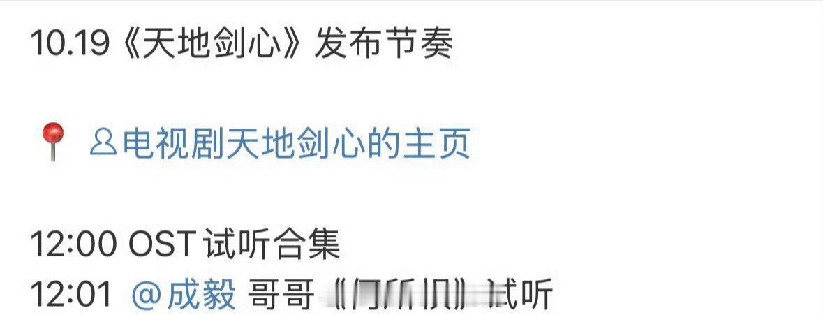 明天成毅两京十五日开机+天地剑心ost,期待了[憧憬]