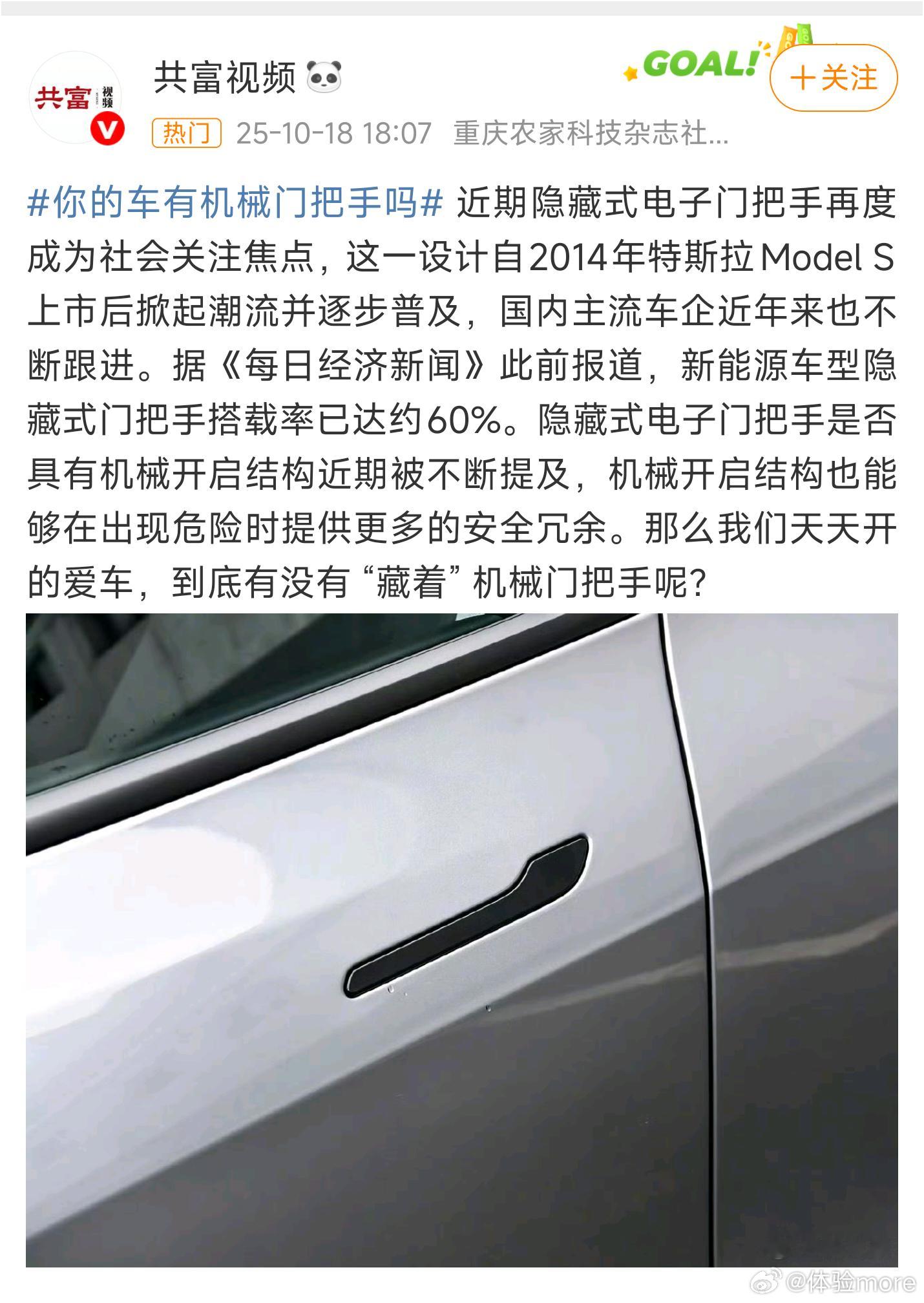 历史有历史的局限。好在工信部已经开展《汽车车门把手安全技术要求》征集意见,相信以后会有越来越多的车有机械开启结构安全冗余,行业是进步的就行。