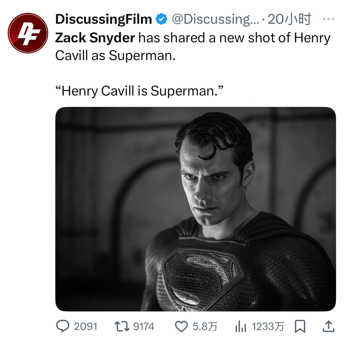 扎导分享《蝙蝠侠大战超人》大超幕后照(p1)大火,配文“亨利·卡维尔是超人”,亨超的多个话题也登上X平台趋势榜!