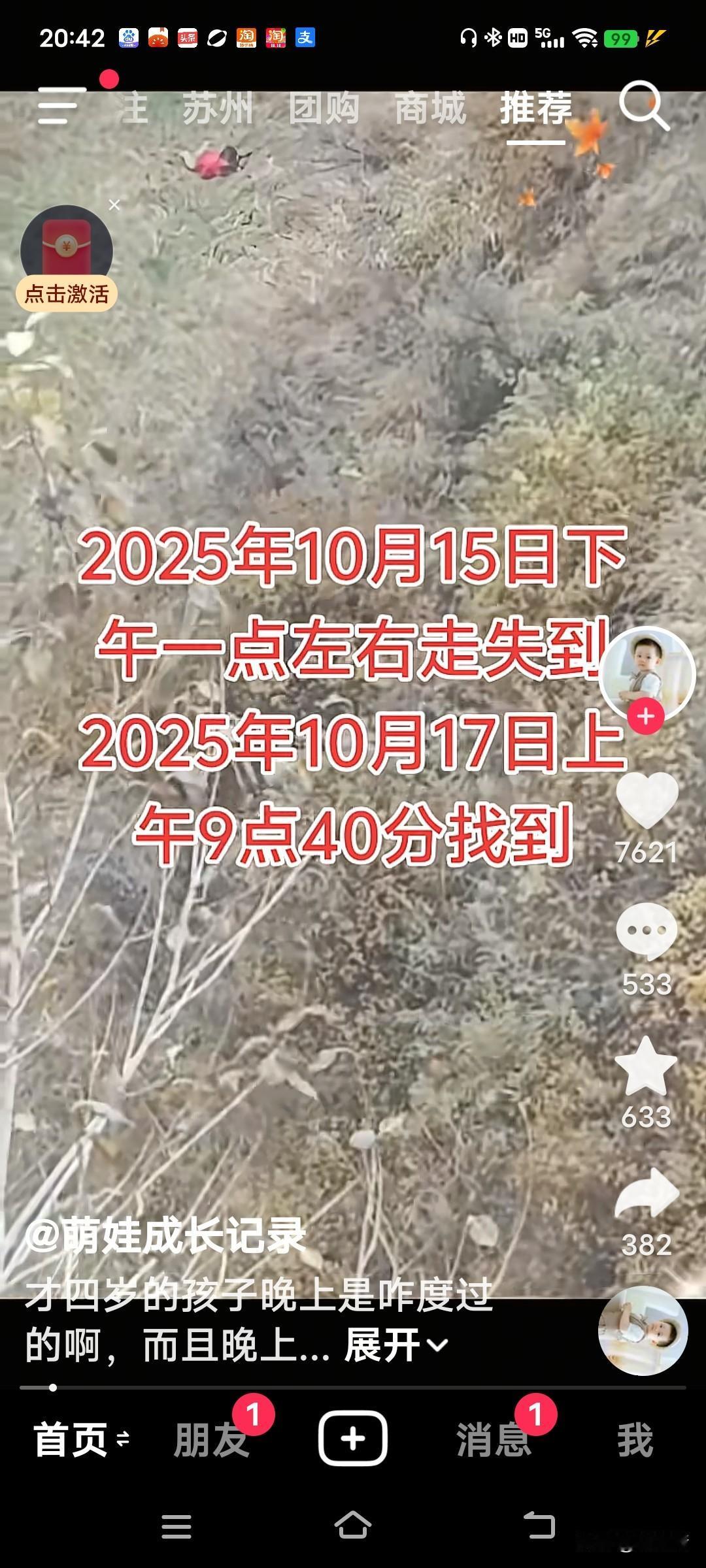 赤峰黑水走失四岁女孩丁一找到了。走失两夜一天,当地气温偏低,在一度左右,环境条件恶劣,晚上她知道躲在山洞避寒。因为饥饿、寒冷,虚弱的爬在沟里。 小女孩是跟爷爷奶奶去地里干活,她在面包车里睡着了。爷爷半小时前看过孩子。再次回来,发现车门锁着,窗户打开,孩子不见了。可能是孩子睡醒发现爷爷奶奶不在,下去找大人,迷失方向,走失了。 当地与邻近省市热心群众、专业救援人员,参与寻找达一万多人次。小女孩穿了一件红衣服,幸运的是小女孩被无人机发现。身体无大碍,正在医院接受治疗。找到与走失地方相距1500米。 小女孩得救了。说明党和政府有担当,人民群众力量大。体现了社会大家庭的温暖和一方有难八方支援的优越性。 多懂事的孩子,小丁一说,“谢谢大家给了我第二次生命,我长大,我会好好学习,以后和你们一样,也做一个好人……” 小小年纪经受如此磨难,祝愿小女孩一生平安!